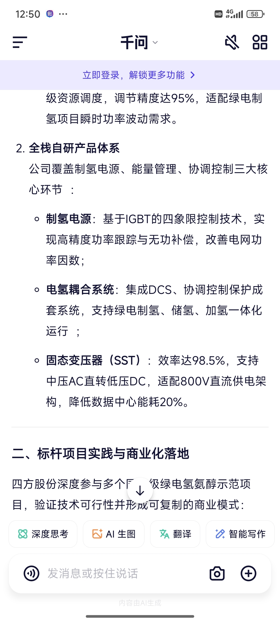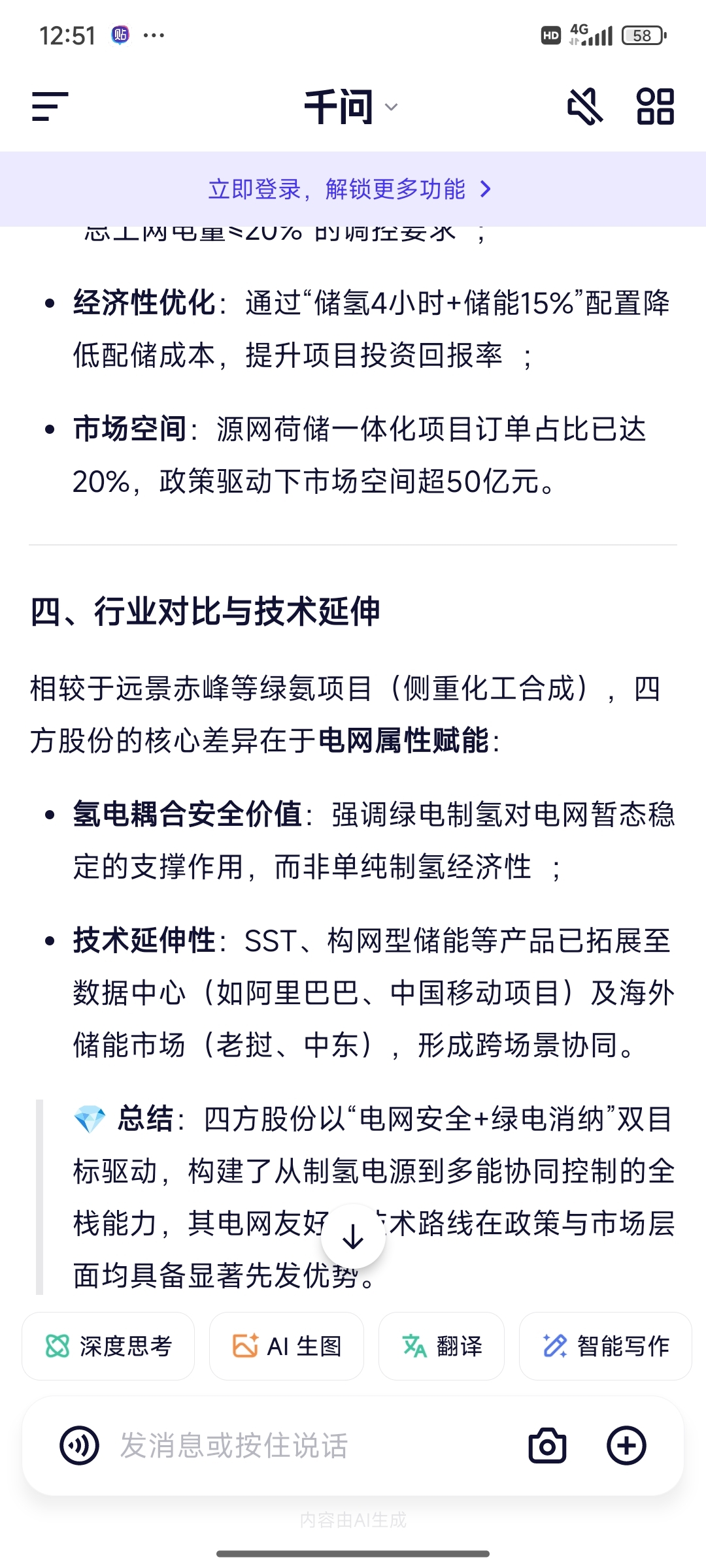 $四方股份(SH601126)$ 氢氨醇是新能源又一个重大战略方向,请问四方股份在绿电氢路径有什么布局和优势吗?