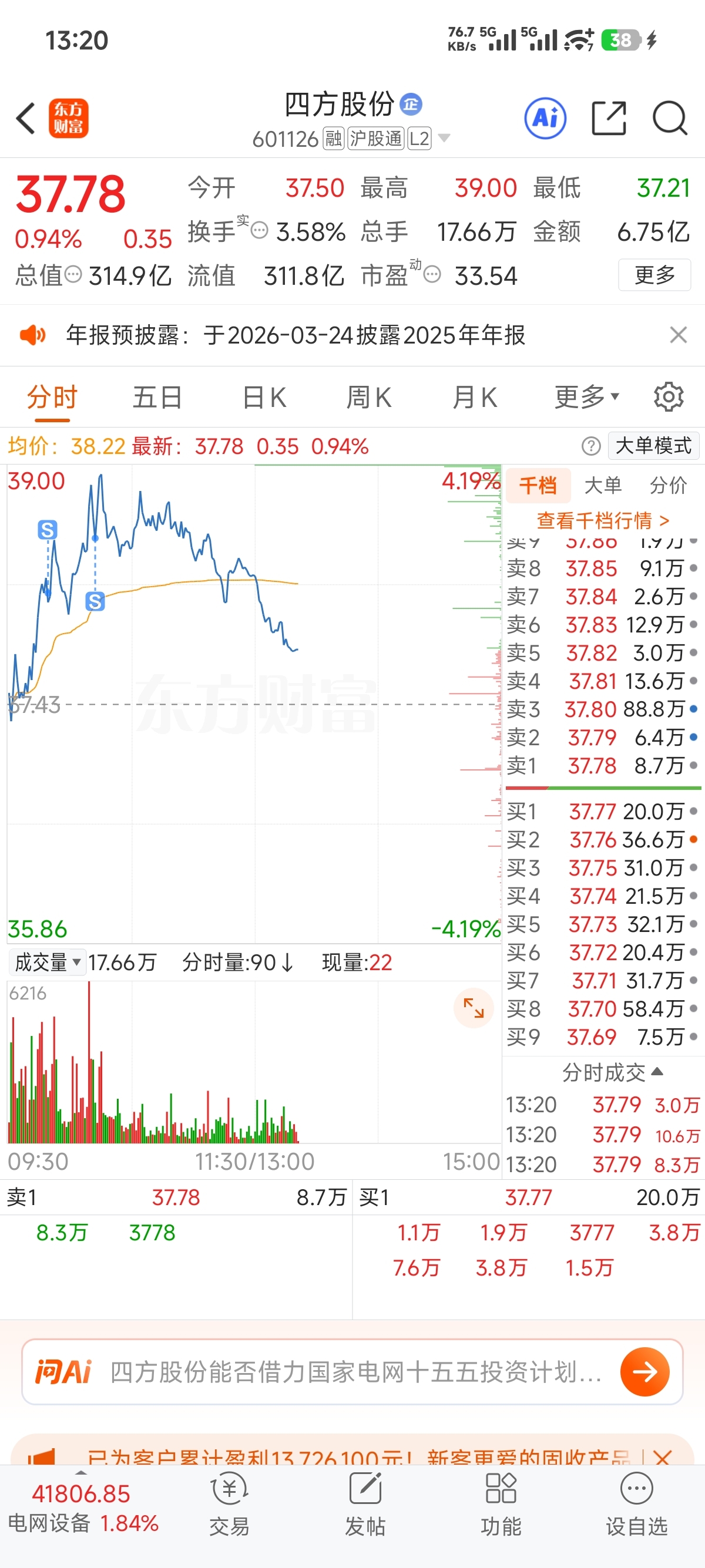 $四方股份(SH601126)$ 讨厌跟特变一样的跳水皇后