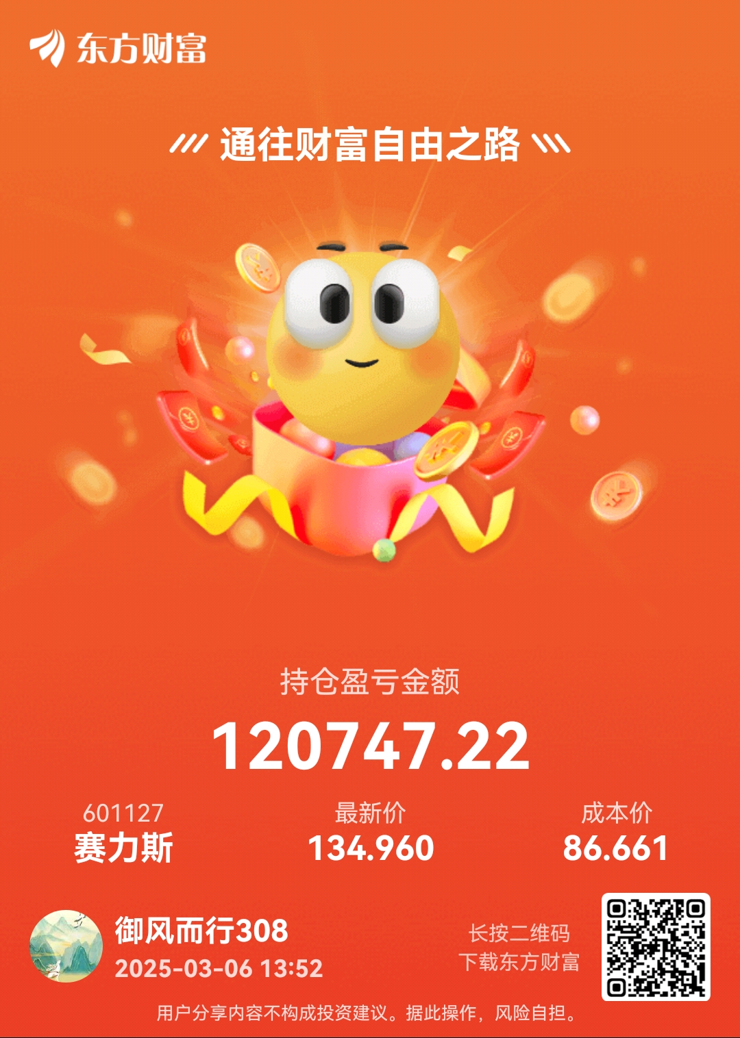 温馨提示: 1.根据《证券法》规定,禁止编造、传播虚假信息或者误导性信息,扰乱证券市场;2.用户在本社区发表的所有资料、言论等仅代表个人观点,与本网站立场无关,不对您构成任何投资建议。用户应基于自己的独立判断,自行决定证券投资并承担相应风险。《东方财富社区管理规定》