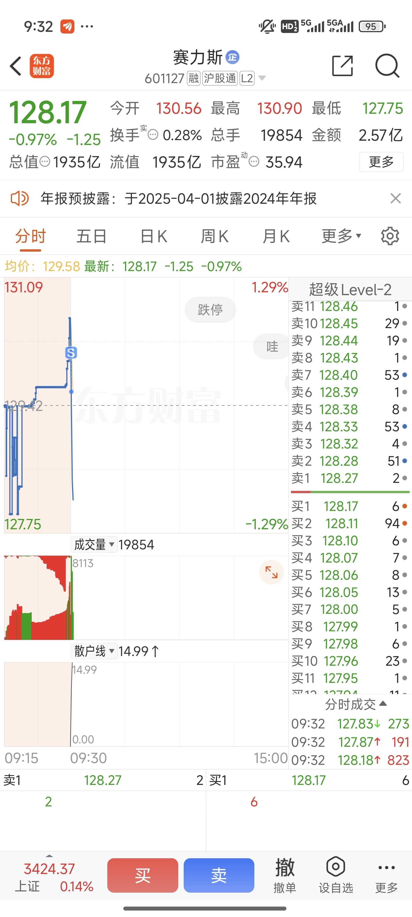 $赛力斯(SH601127)$ ttt,跌的快的单都挂不上,本来等你到31想