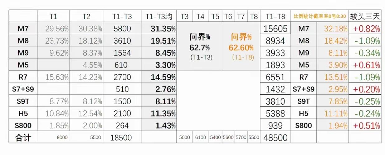 国庆长假1-8号总共才3万台,看来要达到稳态月销6万台,还是很有难度的。