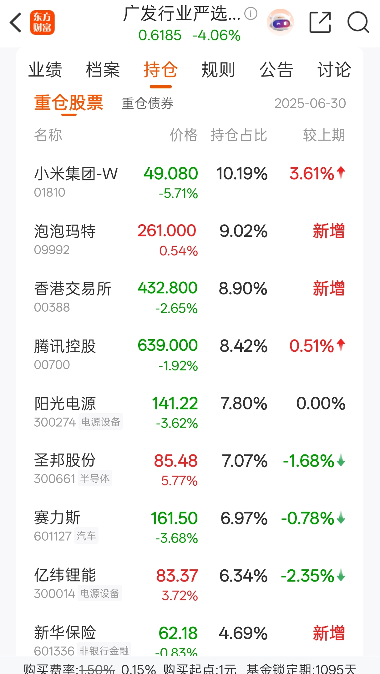 广发这些经理不行了,对了,广发的刘格菘之前一直减仓赛力斯加仓小米把小米加成重仓了