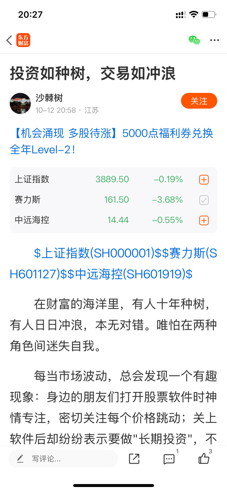 btw,偶然读到笔者的文字,推荐给可能喜欢的大家。“投资是种树,交易是冲浪。伟大的企业是生生不息的生态雨林。”喜欢这种浪漫主义又富想象力的艺术风格,重要的是同时兼具底层逻辑,写的好。