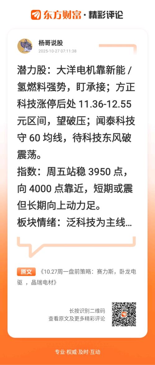 $卧龙电驱(SH600580)$:开盘后展现出上行动能,股价稳步攀升,很快脱离开盘点位,涨幅达到一定水平。冲高后股价进入震荡整理阶段,全程都能感受到多头的主导力与扎实的承接感,周五的企稳态势已经足够积极。今日大概率能延续这份平稳,若能借助工业母机板块的热度突破震荡区间,反弹行情或许就能正式开启,持续持仓格局。