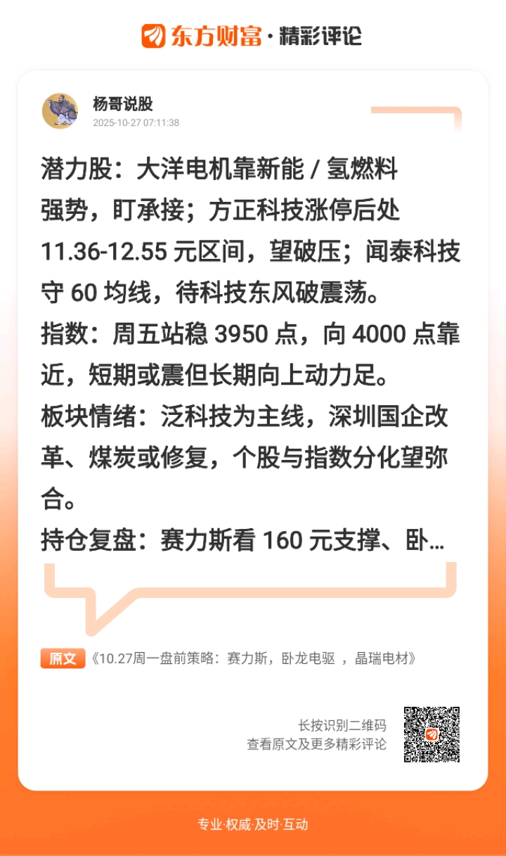 $卧龙电驱(SH600580)$:开盘后展现出上行动能,股价稳步攀升,很快脱离开盘点位,涨幅达到一定水平。冲高后股价进入震荡整理阶段,全程都能感受到多头的主导力与扎实的承接感,周五的企稳态势已经足够积极。今日大概率能延续这份平稳,若能借助工业母机板块的热度突破震荡区间,反弹行情或许就能正式开启,持续持仓格局。
