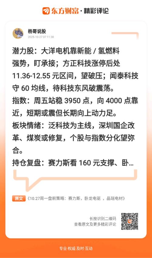 周五指数站稳3950点,震荡上行的格局进一步巩固,市场整体偏暖的基调愈发清晰。当前市场情绪持续回暖,赚钱效应逐步扩散,参与热情不断提升,为行情长期走稳提供了坚实基础。从走势来看,指数正稳步向4000点靠近,短期可能有小幅震荡,但长期向上的动力充足,后续有望持续朝着目标迈进。