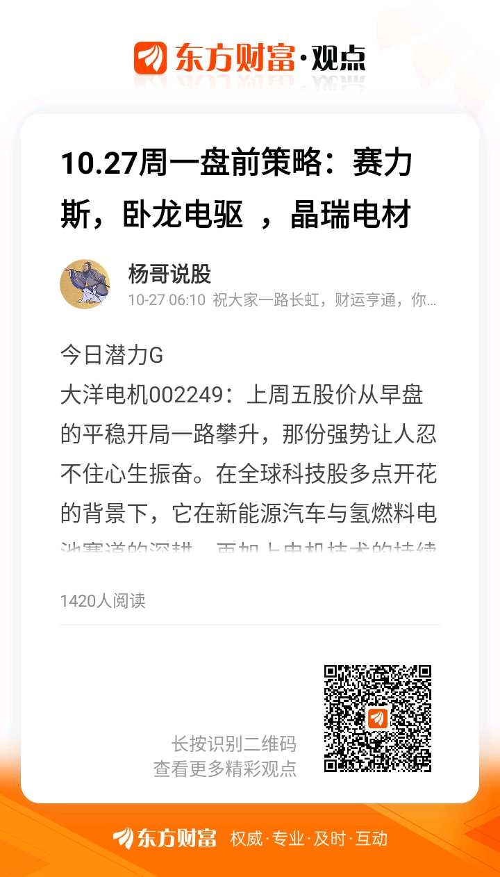$赛力斯(SH601127)$  $卧龙电驱(SH600580)$  $晶瑞电材(SZ300655)$