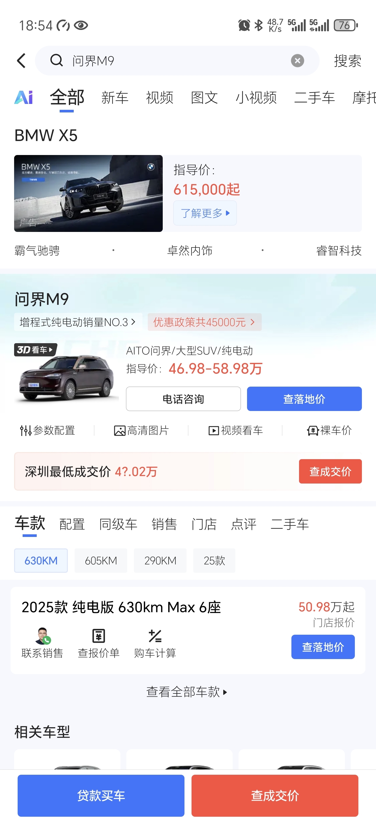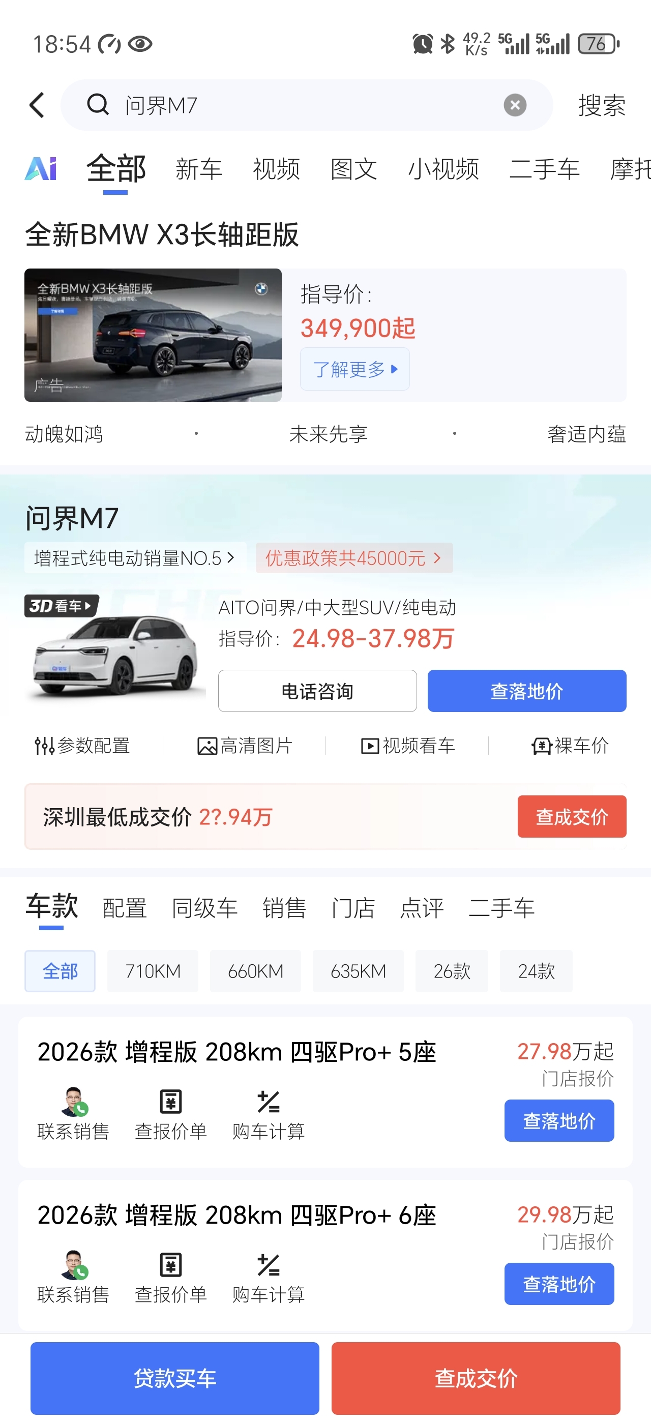 宝马在易车的问界M7和M9搜索结果页给X3和X5买了广告。而且宝马X3显示的指导