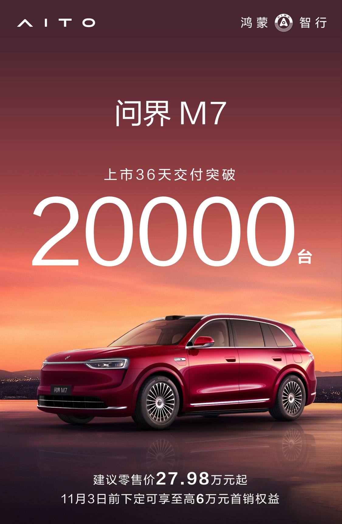 问界M7上市36天交付破2万台,作为对比,当初问界M8破2万台的时间是45天,可