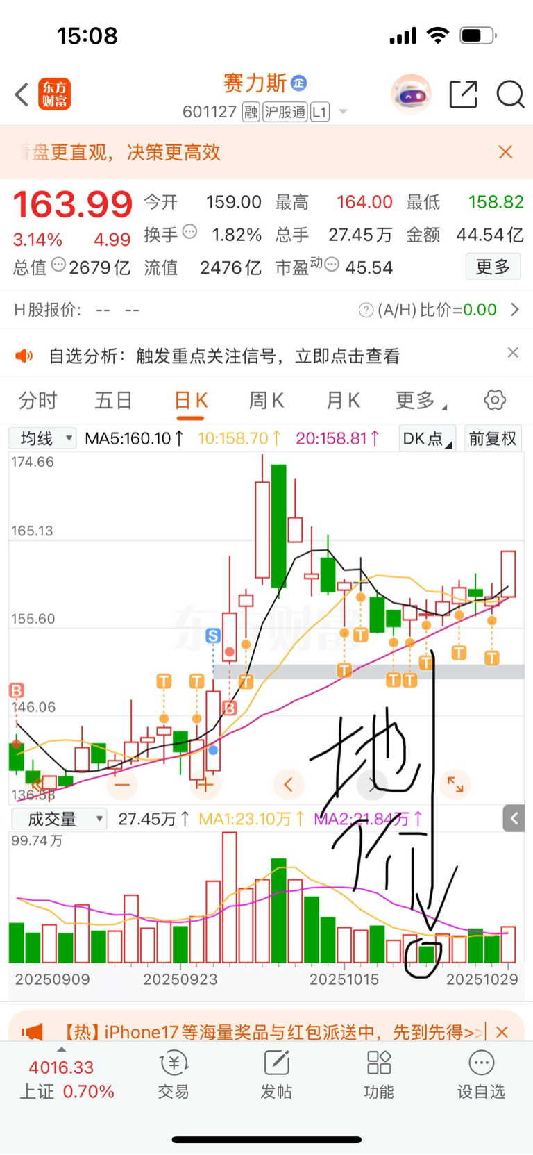 $赛力斯(SH601127)$ 地量见地价!以后再也没有160的赛力斯了!