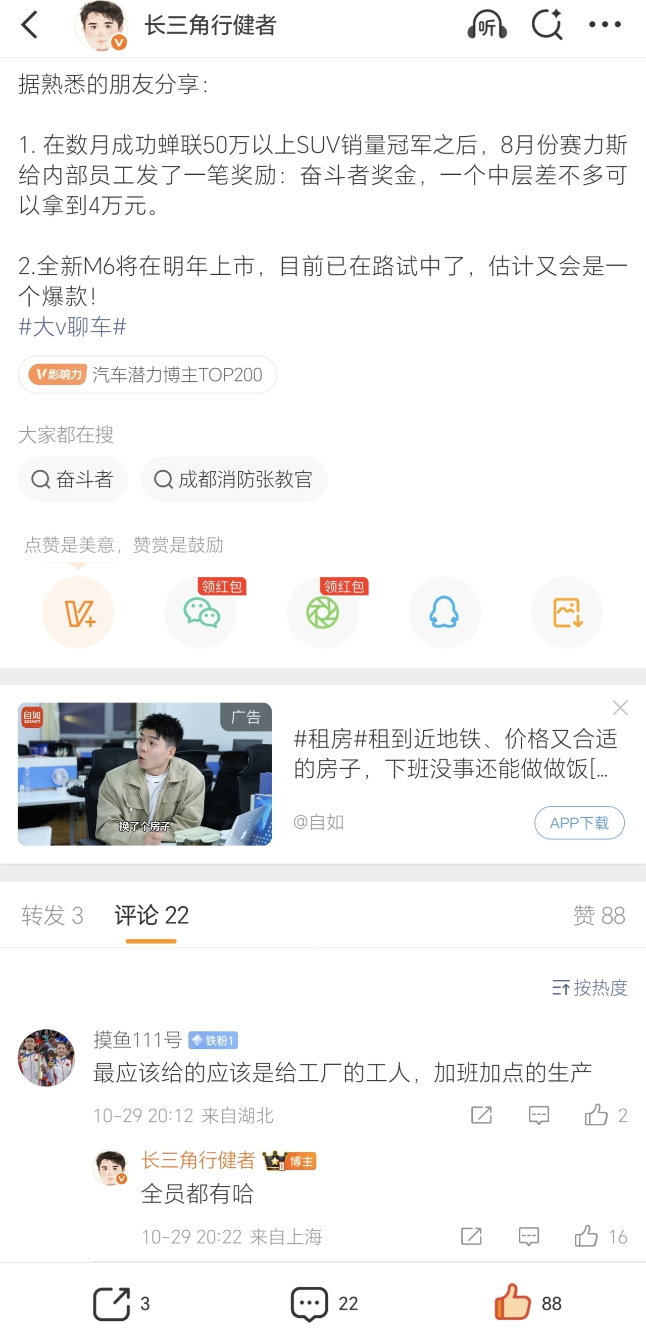 赛力斯发奋斗者奖金,问界M6已经在路试。