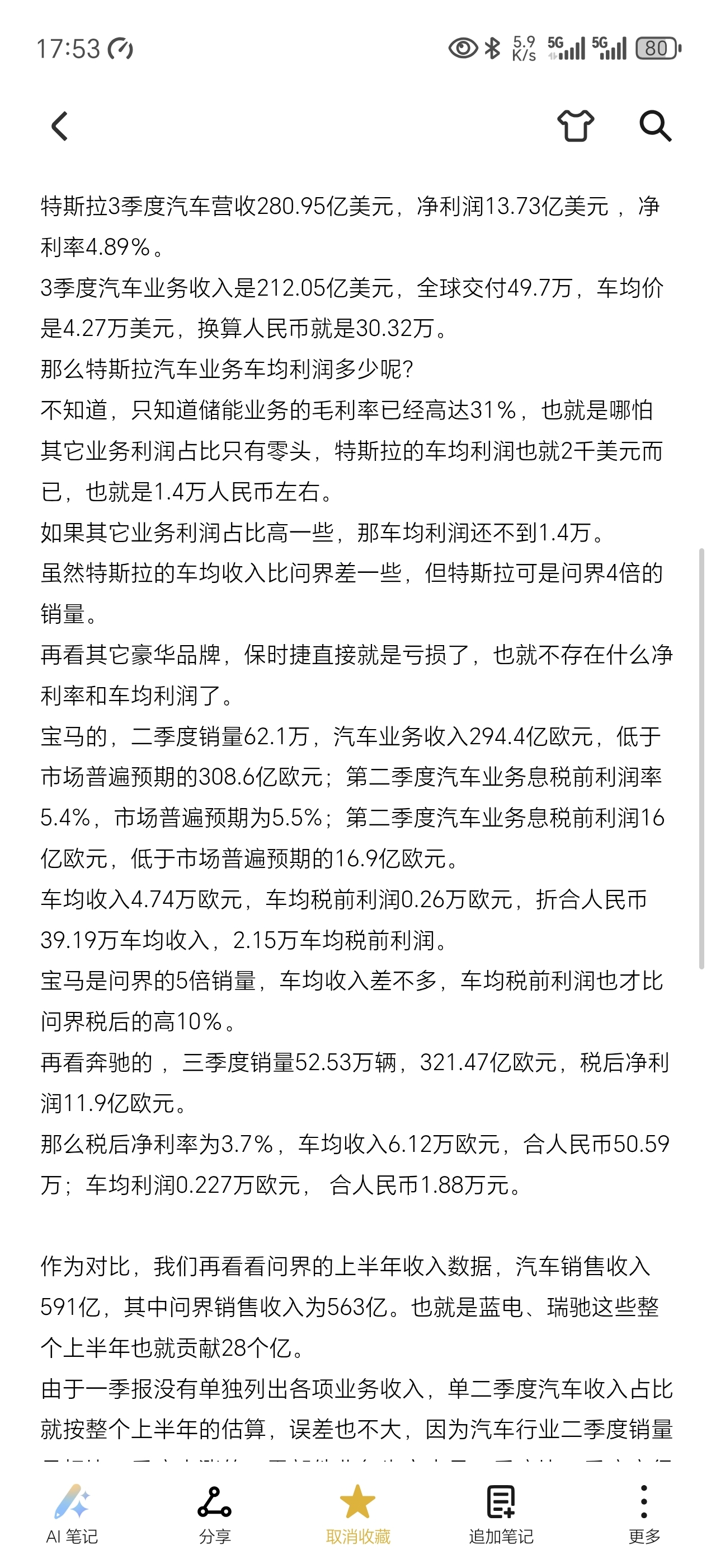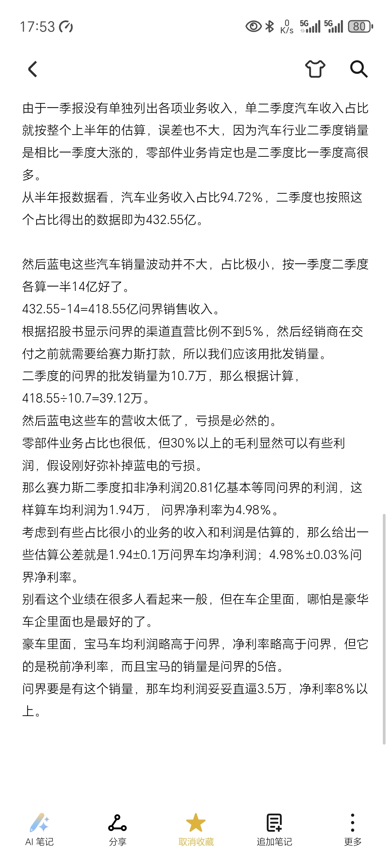 5.销量多了1.7万,扣非利润环比多了1.4亿。
