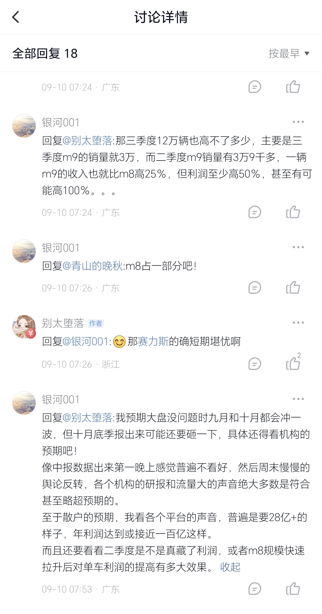7.毕竟其实M8的配置并没有比M9低很多,但实际均价少了10万,说明M9的利润能到M8的1.5-2倍。这也是为什么去年三季度是单车利润最高的一个季度,因为去年三季度M9销量极高占比也极高。