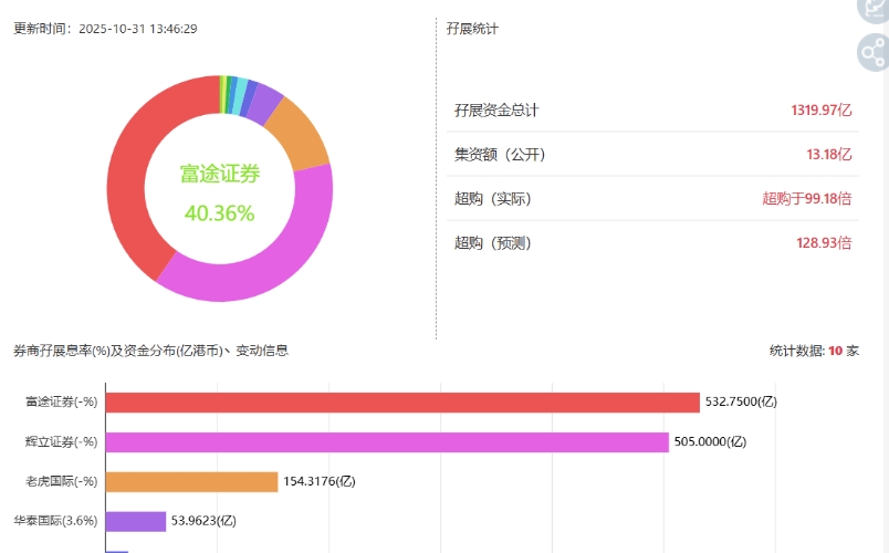 这1320亿孖展金额,超购99倍应该就是最终数了吧,定价也马上出来了,不超过13