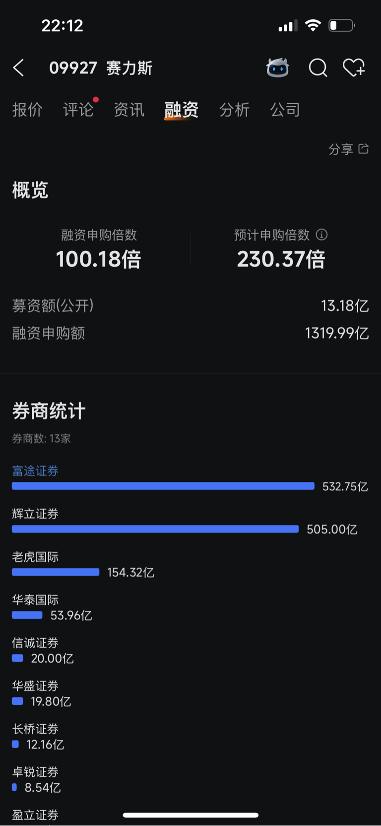 $赛力斯(SH601127)$ 融资申购倍数 百倍,预计申购倍数 230 倍,超预期了