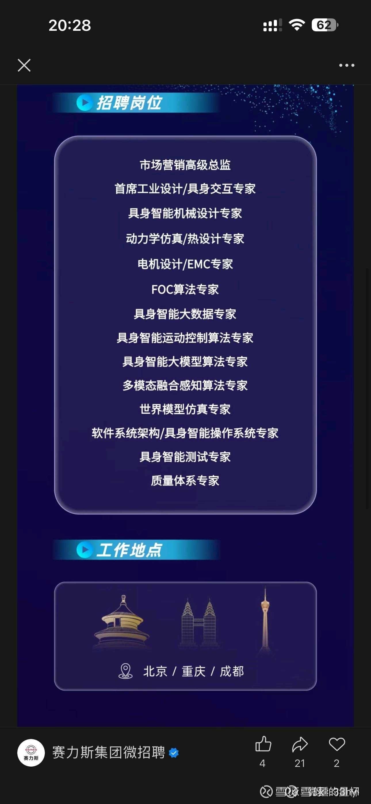 $赛力斯(SH601127)$ 股东们,赛力斯不能按照传统新能源车企看待,这是正儿八经的综合科技公司