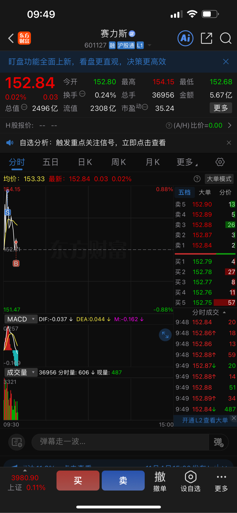 $赛力斯(SH601127)$ 羡慕这两天进的,进早了,被套了,晚上也能睡安稳了,一顿操作猛如虎,一看账户0.3的T、心累