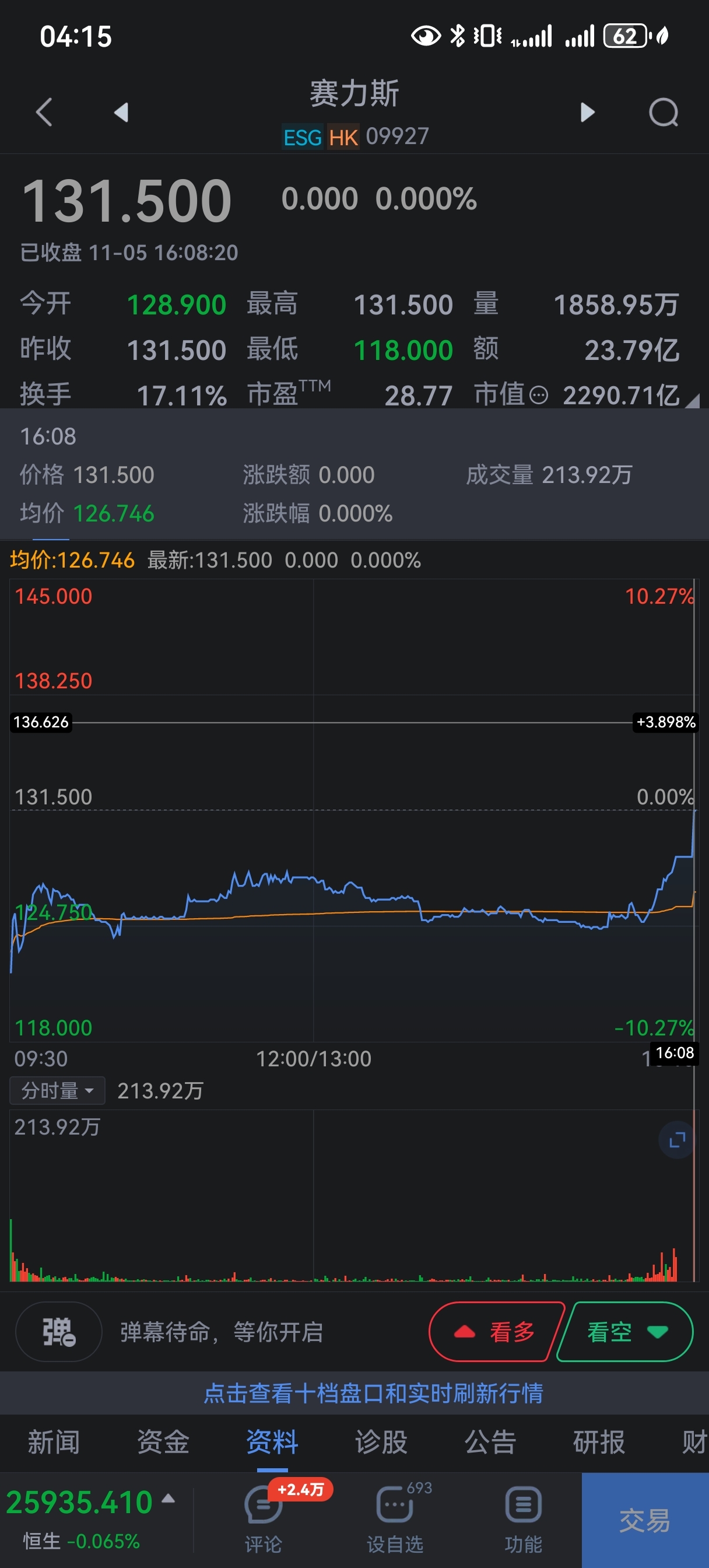 赛力斯港股16:08拉到平盘,16:08成交了213万股。期待明天赛力斯A股。