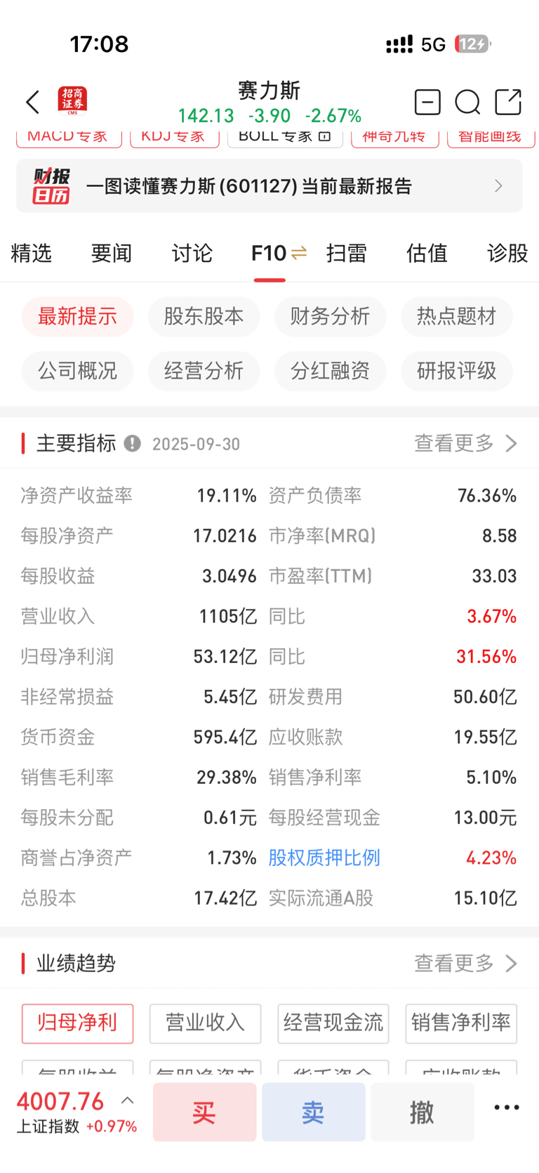 $赛力斯(SH601127)$ 还好今天跑了 赛力斯负债居然这么高