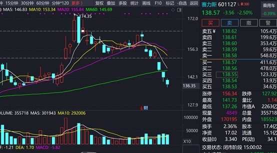 塞力斯跌破图中的颈线位置后,快速下跌,这个时候最好是空仓状态,也不要急于左侧抄底