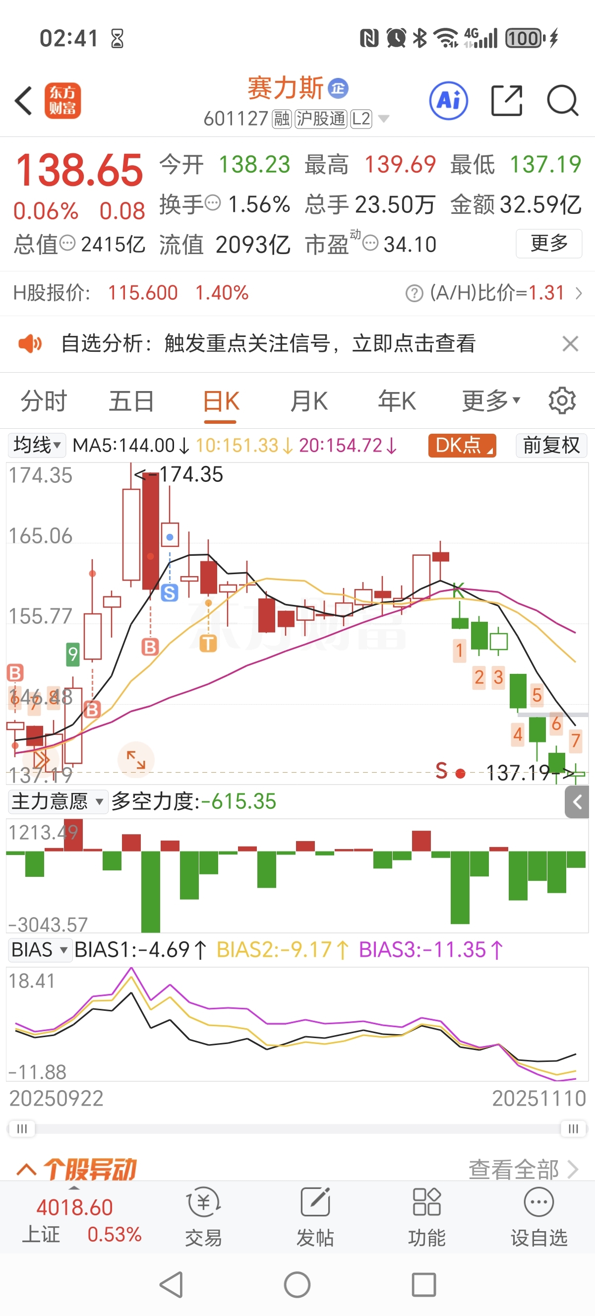 $赛力斯(SH601127)$ 神奇九转已经形成,还要继续跌下去