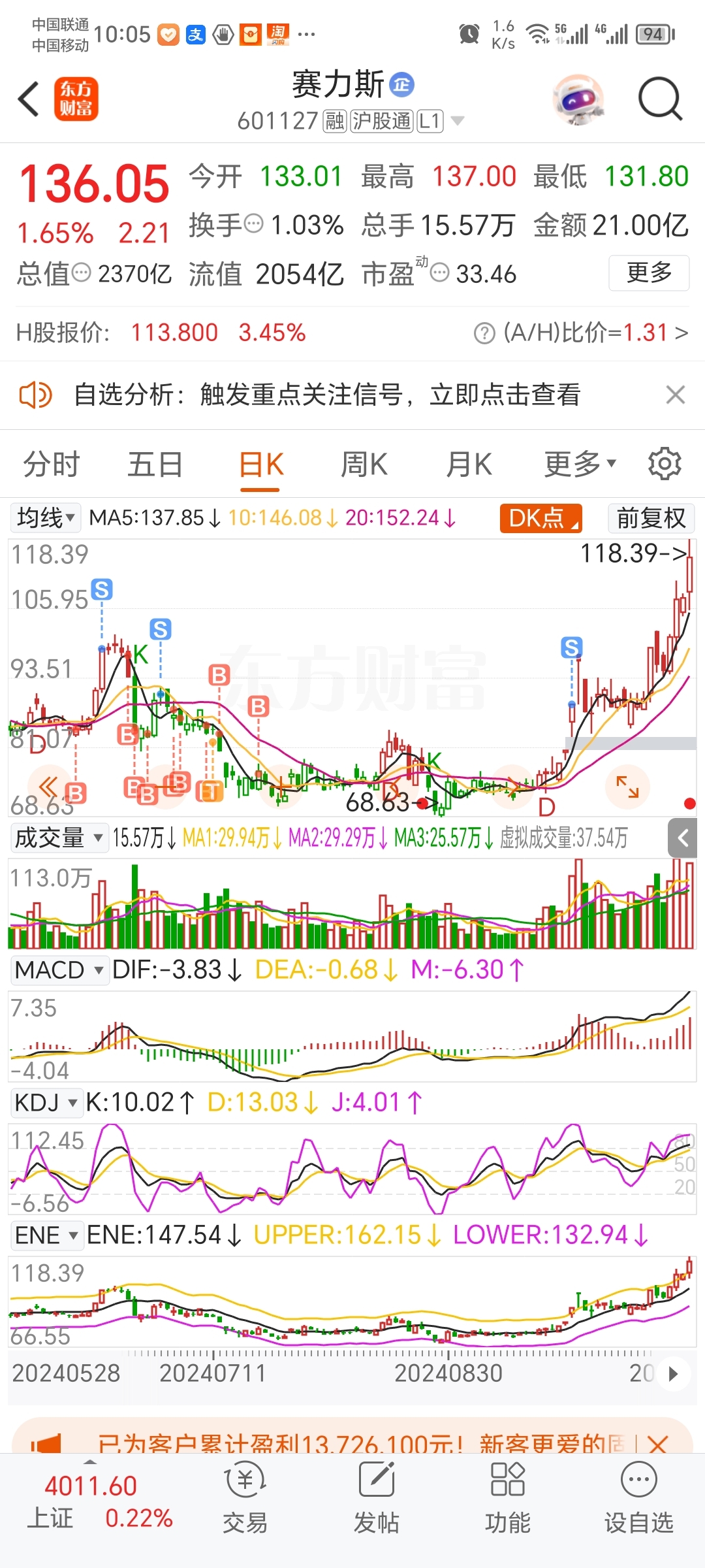$赛力斯(SH601127)$ 涨了就出来屁颠我,说句难听的,我比你们还多头,我只是回撤那么多不爽,现在还有筹码