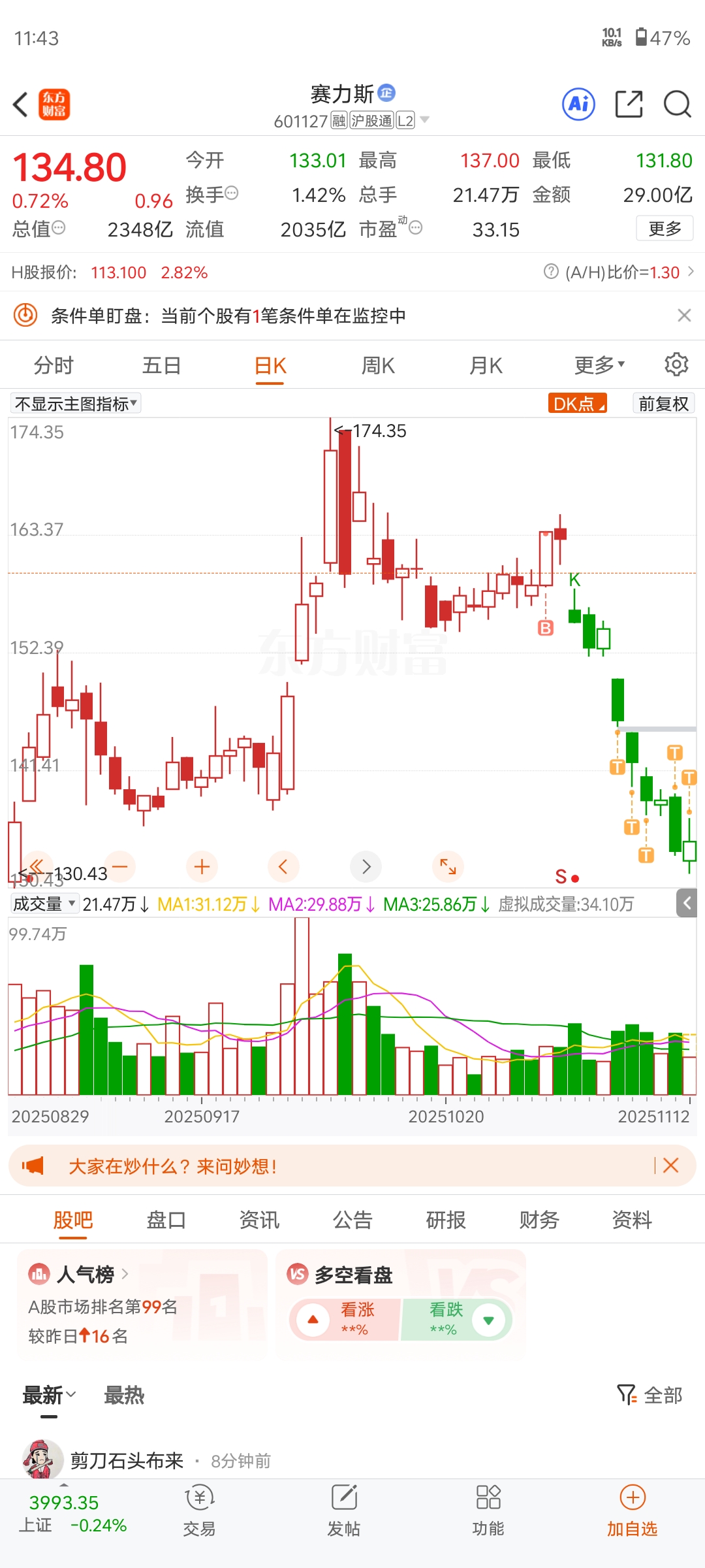 买你我真是装了18辈子大运了不知道何时能回本,10月份栽在了汽车上面,赛力斯亏,