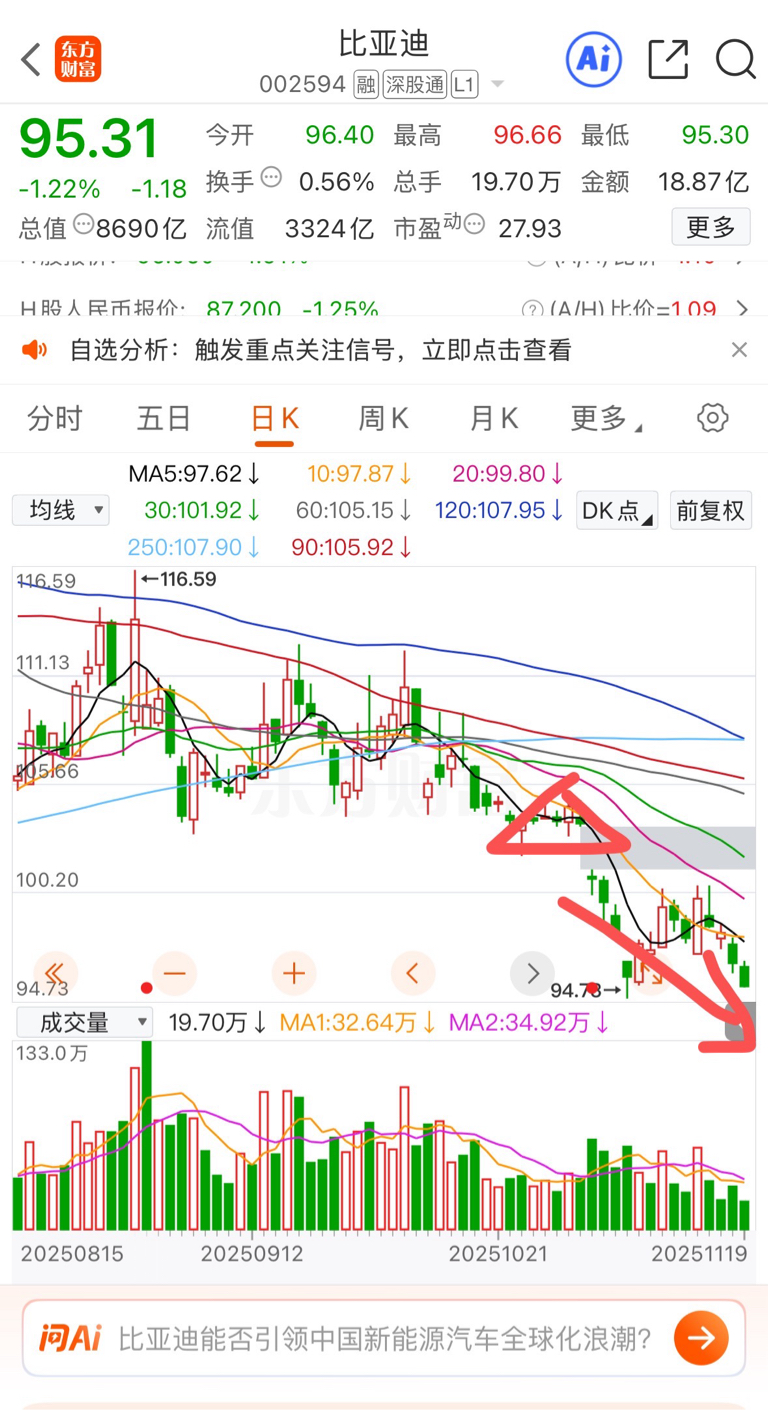 $赛力斯(SH601127)$ 想知道才会跌到哪里吗?参考一下其他的三角形就是他现在的位置。不到110以下,千万不要买,甚至不破100都不要买