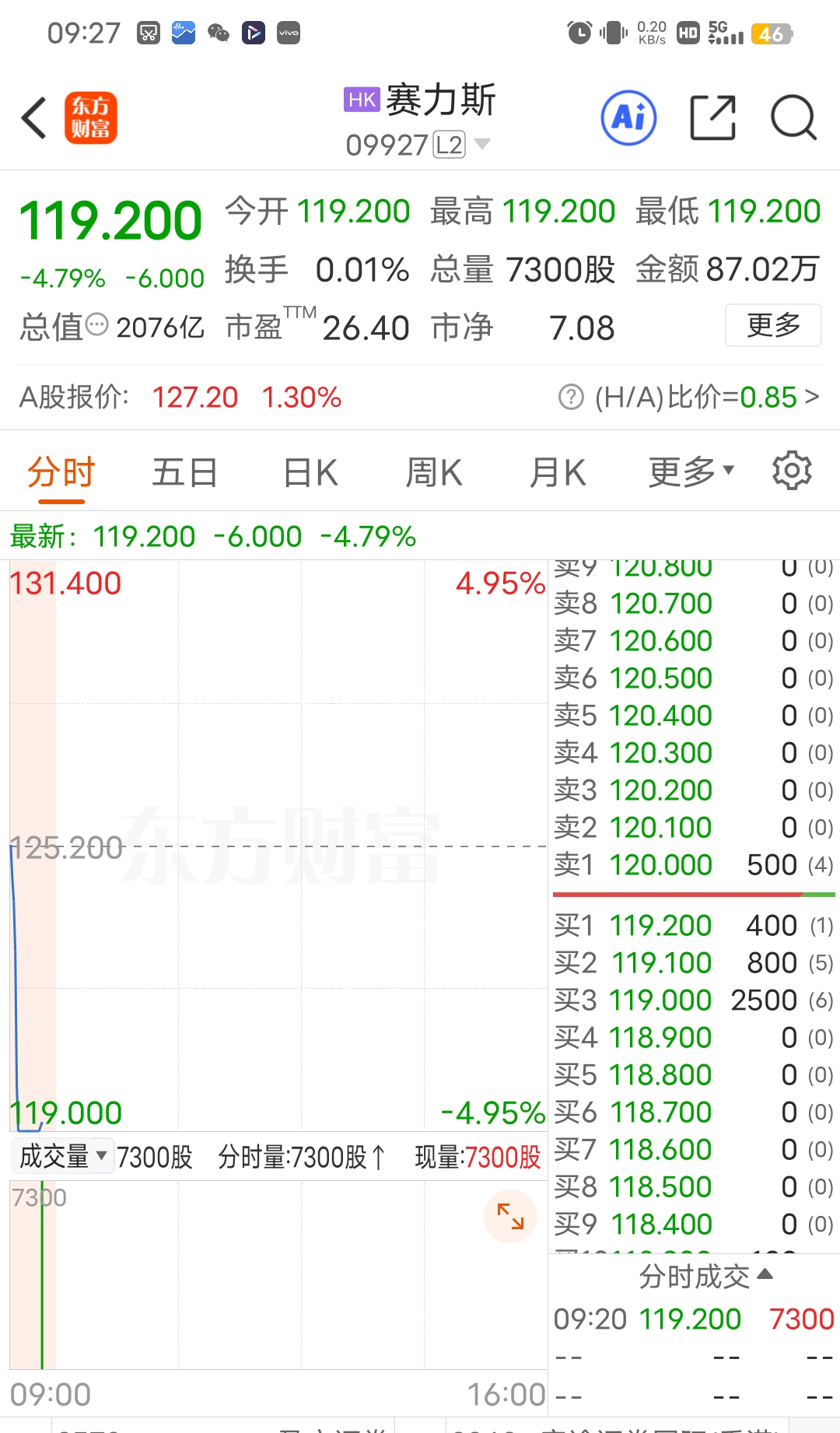 $赛力斯(SH601127)$ 港股流通盘才13亿,开盘价就是87万成交额确定,100w起码开盘价能拉个涨停。