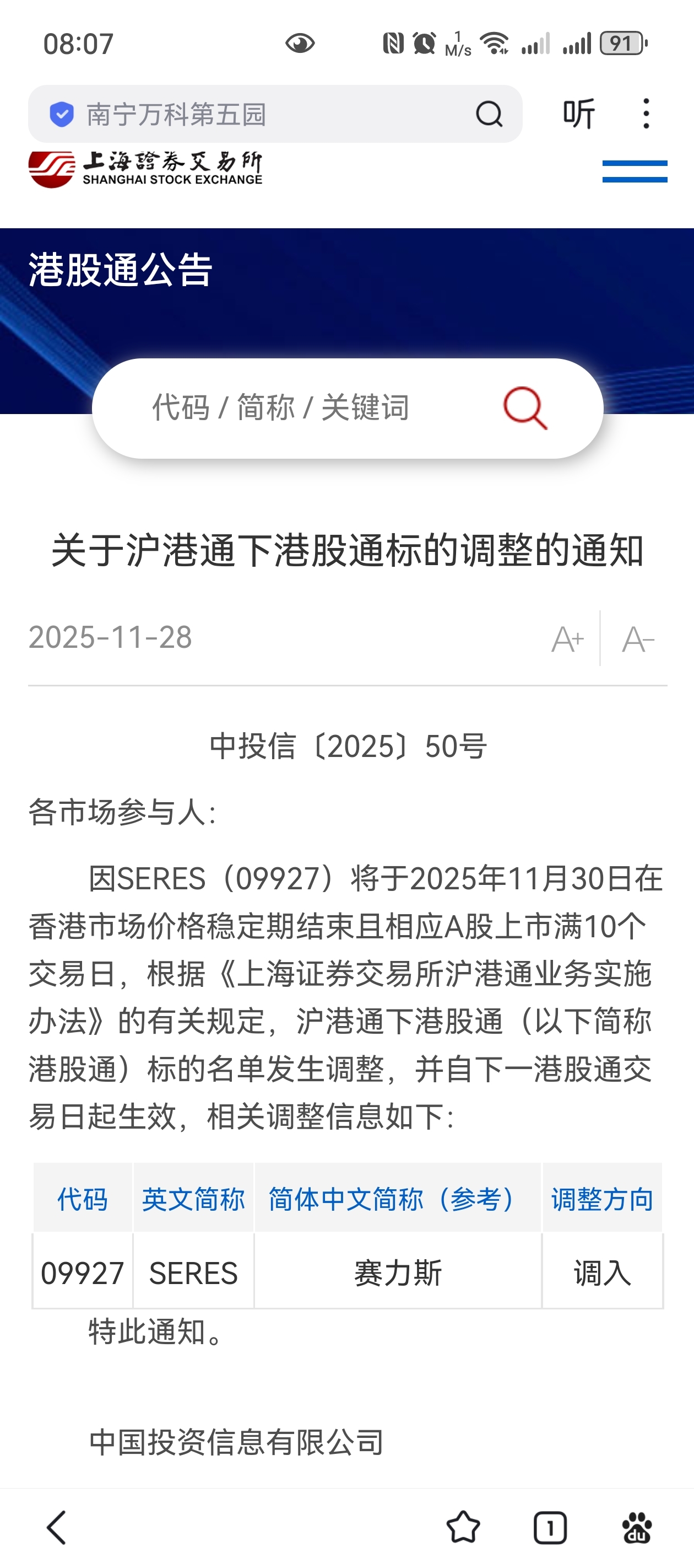 $赛力斯(SH601127)$ 那个大佬解读下,港股什么时候纳入港股通