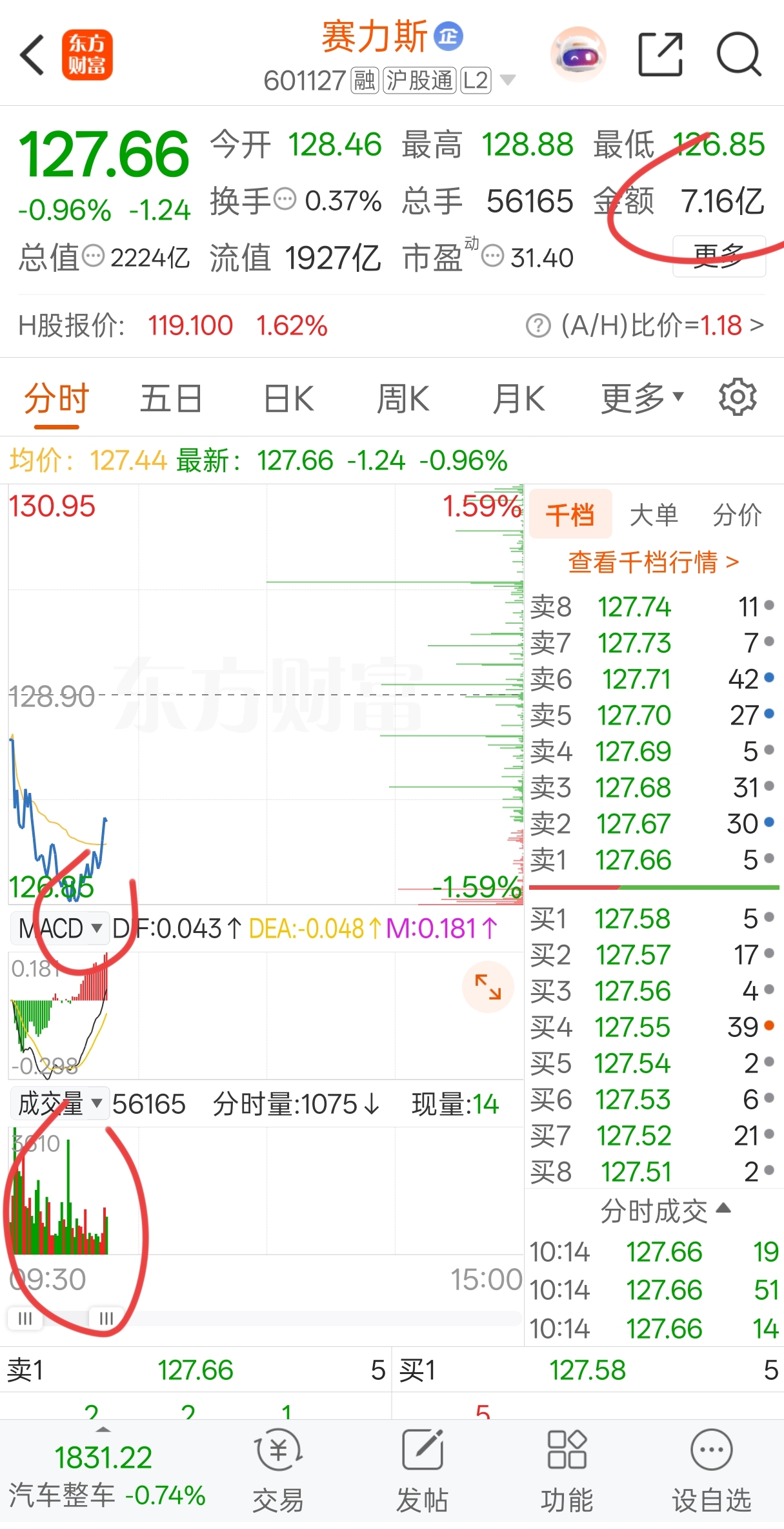 $赛力斯(SH601127)$ $赛力斯(HK|09927)$ 继续缩量惜筹,对了,这大单是哪个机构或游资卖的,我姑且认为是在拆单洗盘,大单卖出去小单买回来,否则就丢人了