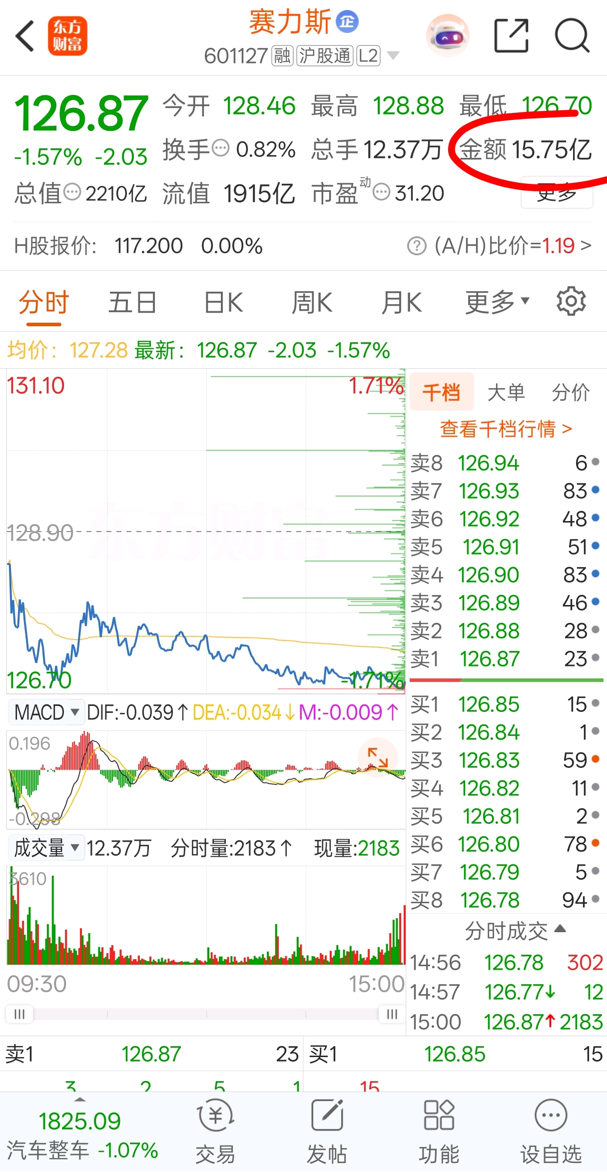 $赛力斯(SH601127)$ $赛力斯(HK|09927)$ 半天9亿,全天15亿,严重缩量地量,希望明天只剩12亿,饿死量化,4季度机构排名和防御阶段,市场流动性不足,这不是想中长线上车的人的埋伏的机会么