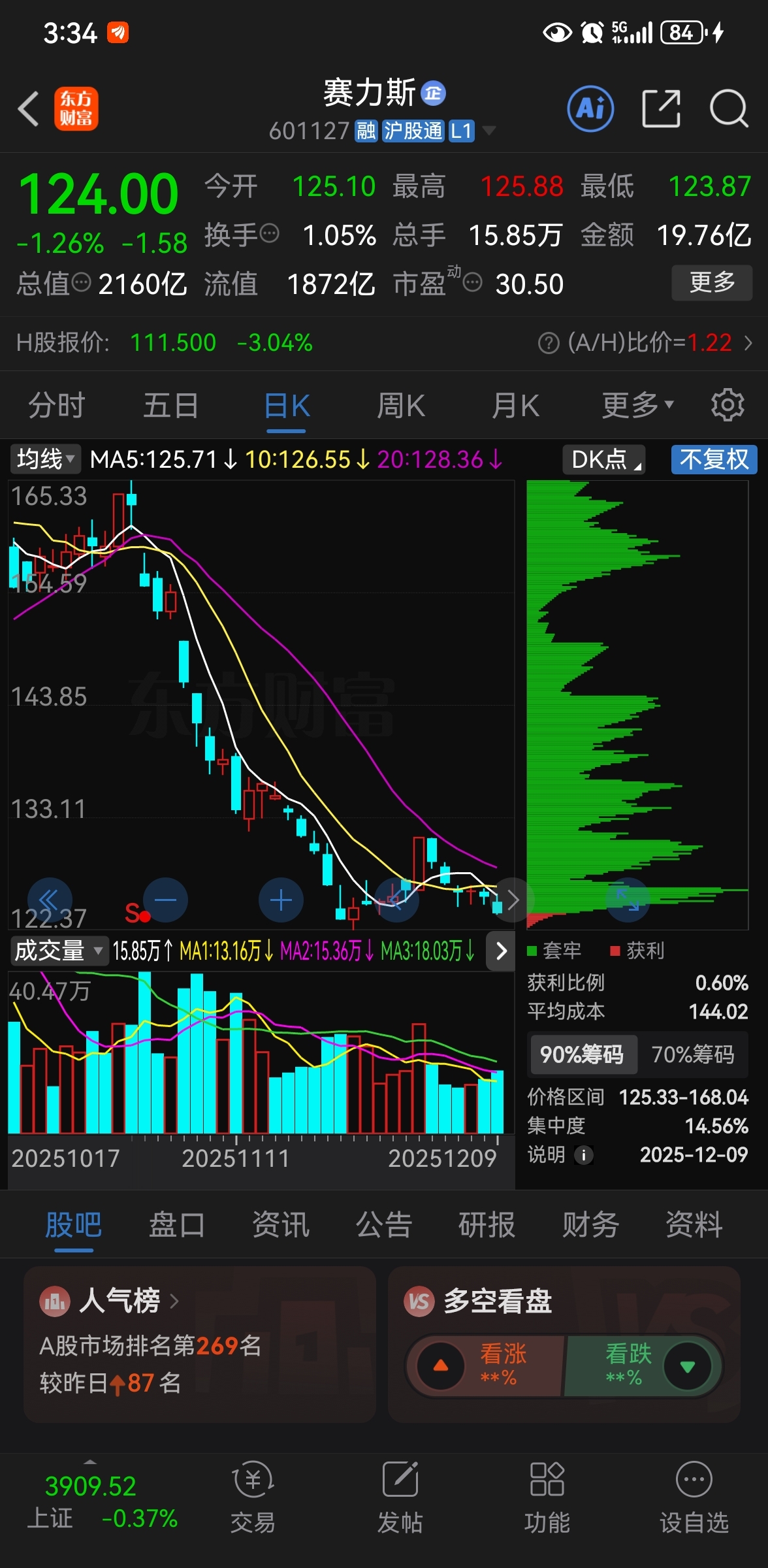 $赛力斯(SH601127)$ 筹码峰下移了,洗盘洗的差不多了!