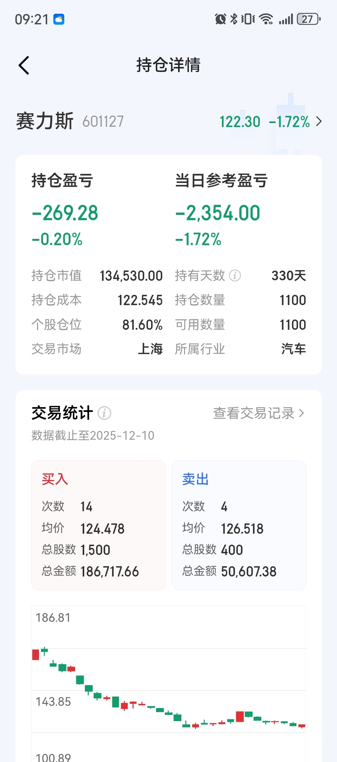 $赛力斯(SH601127)$ 330天终于绿了…又充了6万,是换股票还是补