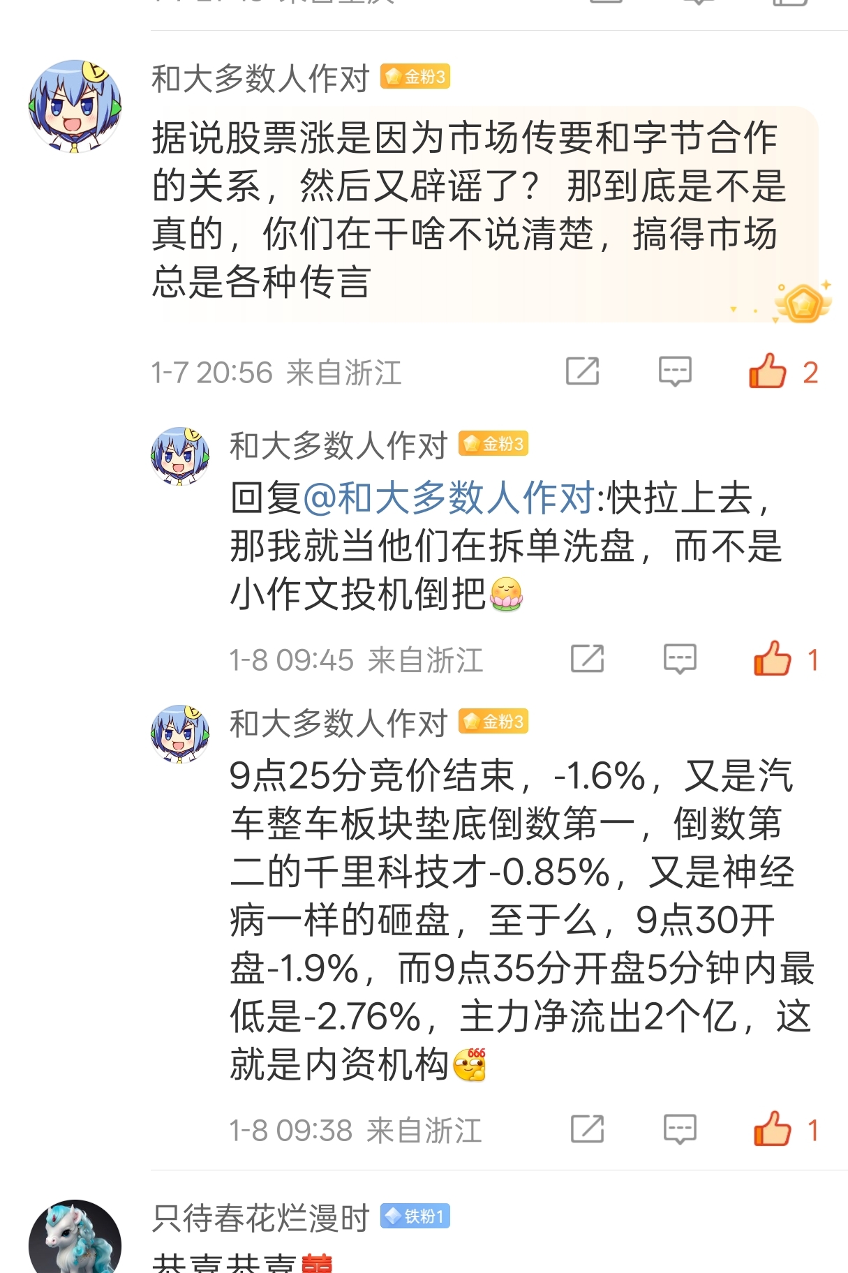 温馨提示: 1.根据《证券法》规定,禁止编造、传播虚假信息或者误导性信息,扰乱证券市场;2.用户在本社区发表的所有资料、言论等仅代表个人观点,与本网站立场无关,不对您构成任何投资建议。用户应基于自己的独立判断,自行决定证券投资并承担相应风险。《东方财富社区管理规定》