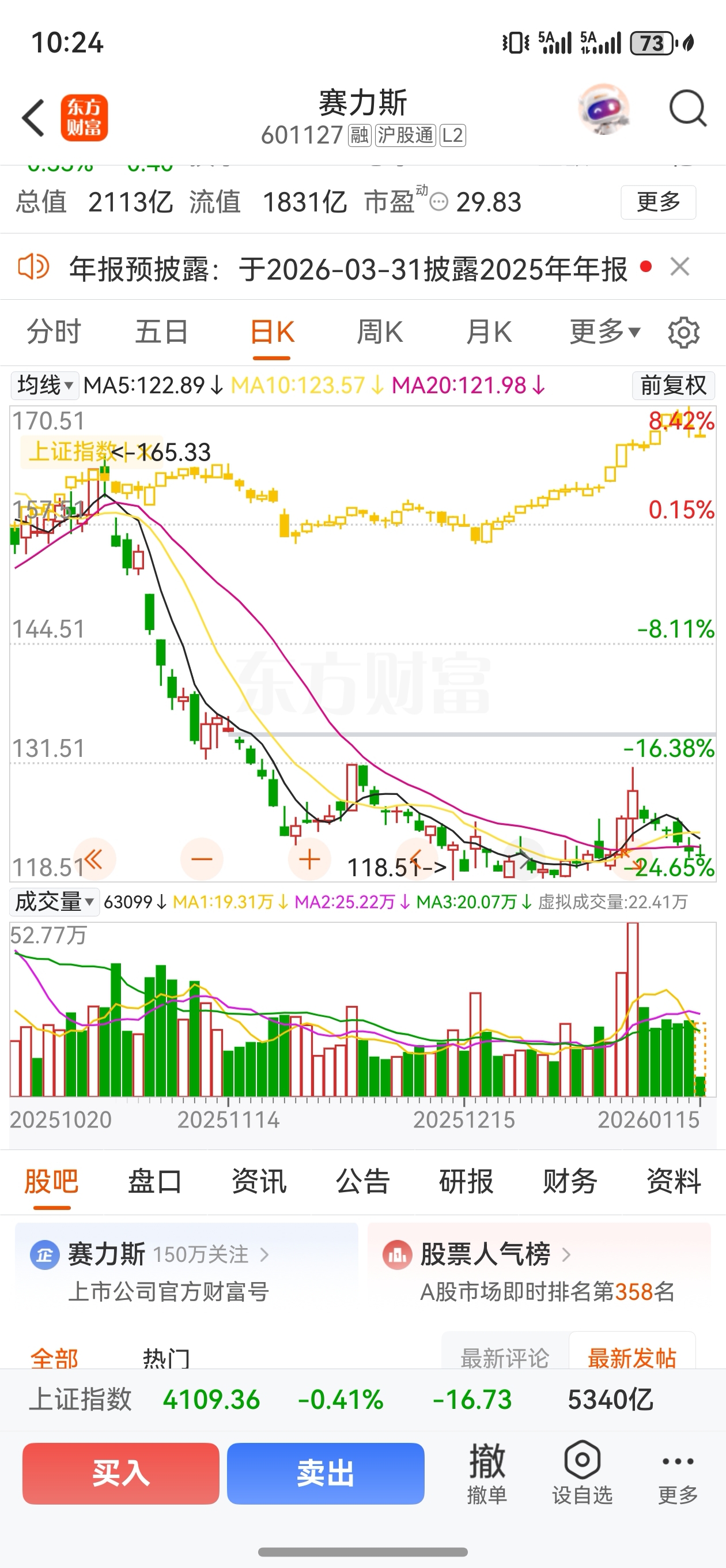 $赛力斯(SH601127)$ 这个能怎么讲,跟大盘叠加都这个德行