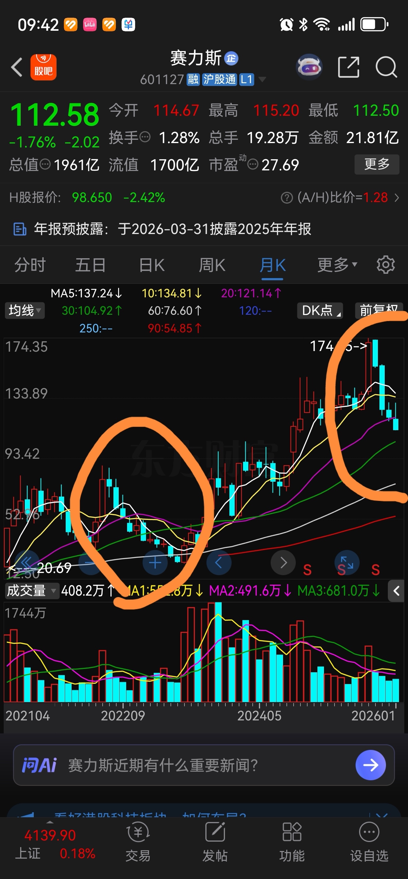 $赛力斯(SH601127)$ 看月线走势真得是让人不寒而栗。哪怕上次从90跌到20多都没有这次走得那么难看。后面还不知道会出一些什么幺蛾子。唯一能让人有的点底气的是毕竟还有10%的引望股份。