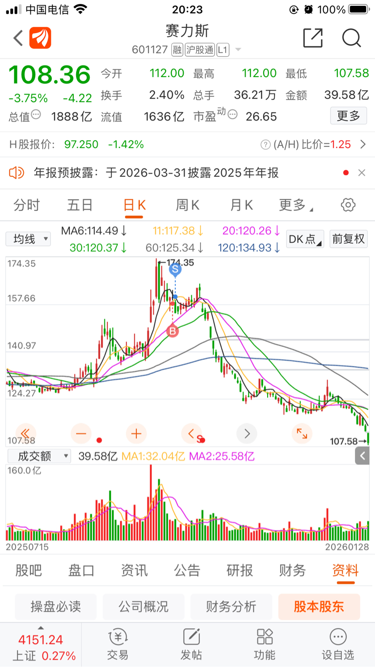 $赛力斯(SH601127)$ 还好,小亏就跑了!!!