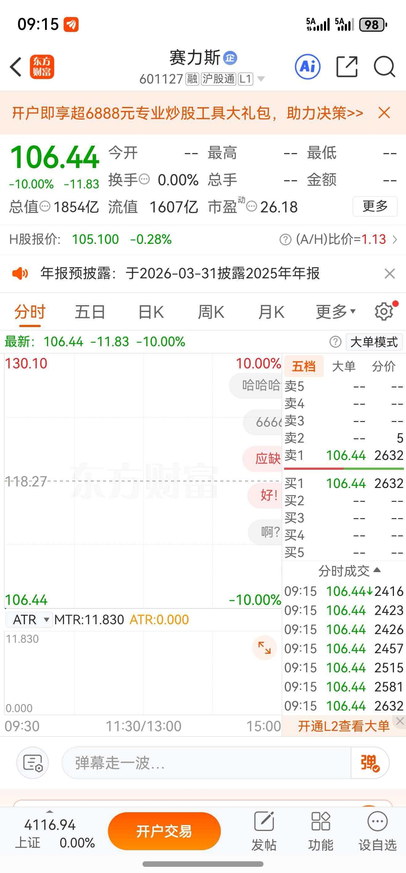 $赛力斯(SH601127)$ 赛好几次竞价跌停,就是在提醒你们赶紧跑,有些人反而误会了主力的意思,说别撤单要抄底,上周竞价跌停和今天的价钱有区别吗?