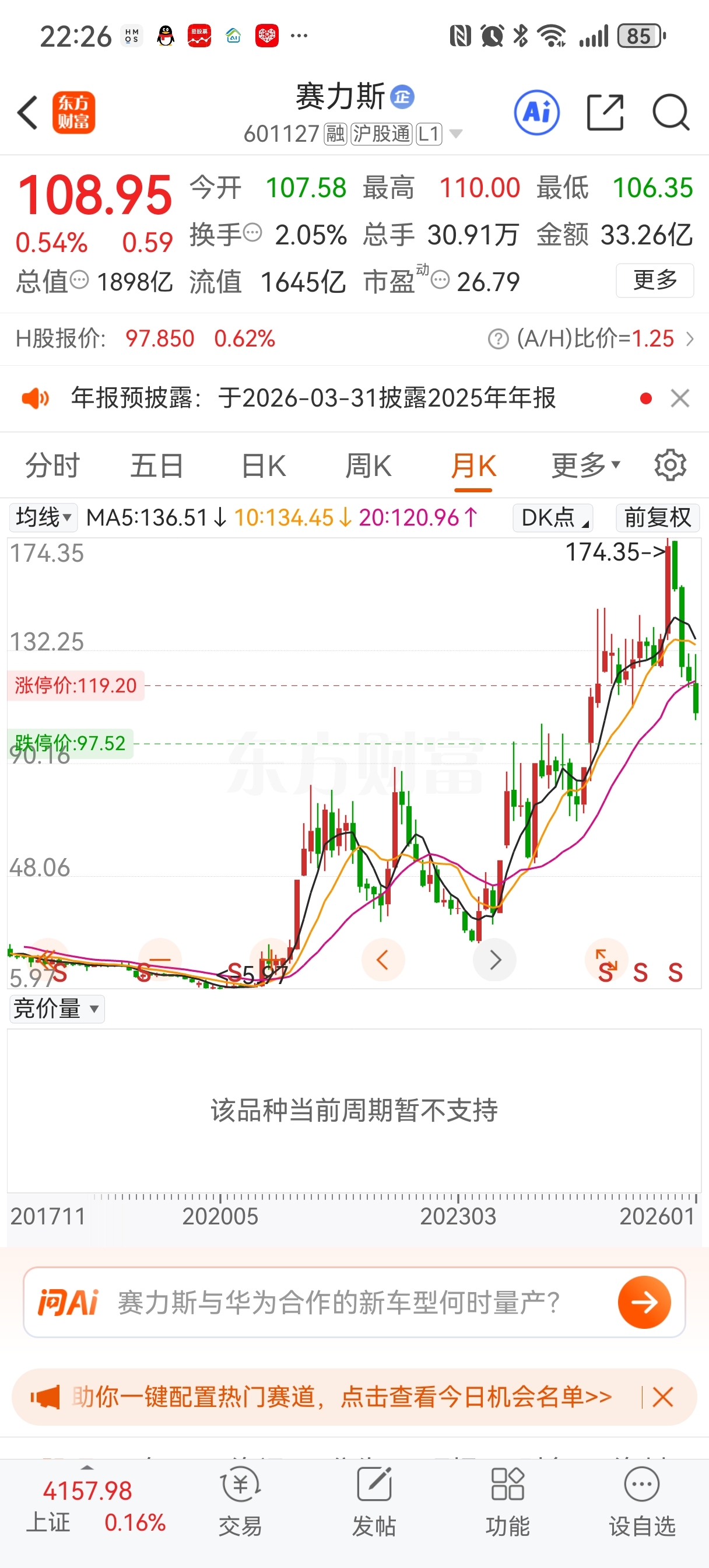 看赛力斯以往的月线调整幅度。我估计这次有可能调7~8个月。有可能调到5月份。再开