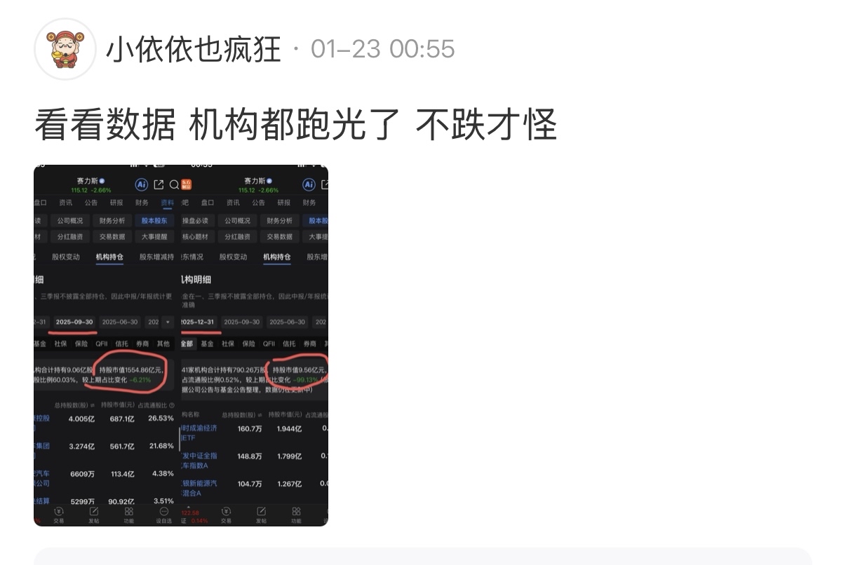 $赛力斯(SH601127)$ 早就说机构都跑光了 一直被怼 事实数据说话
