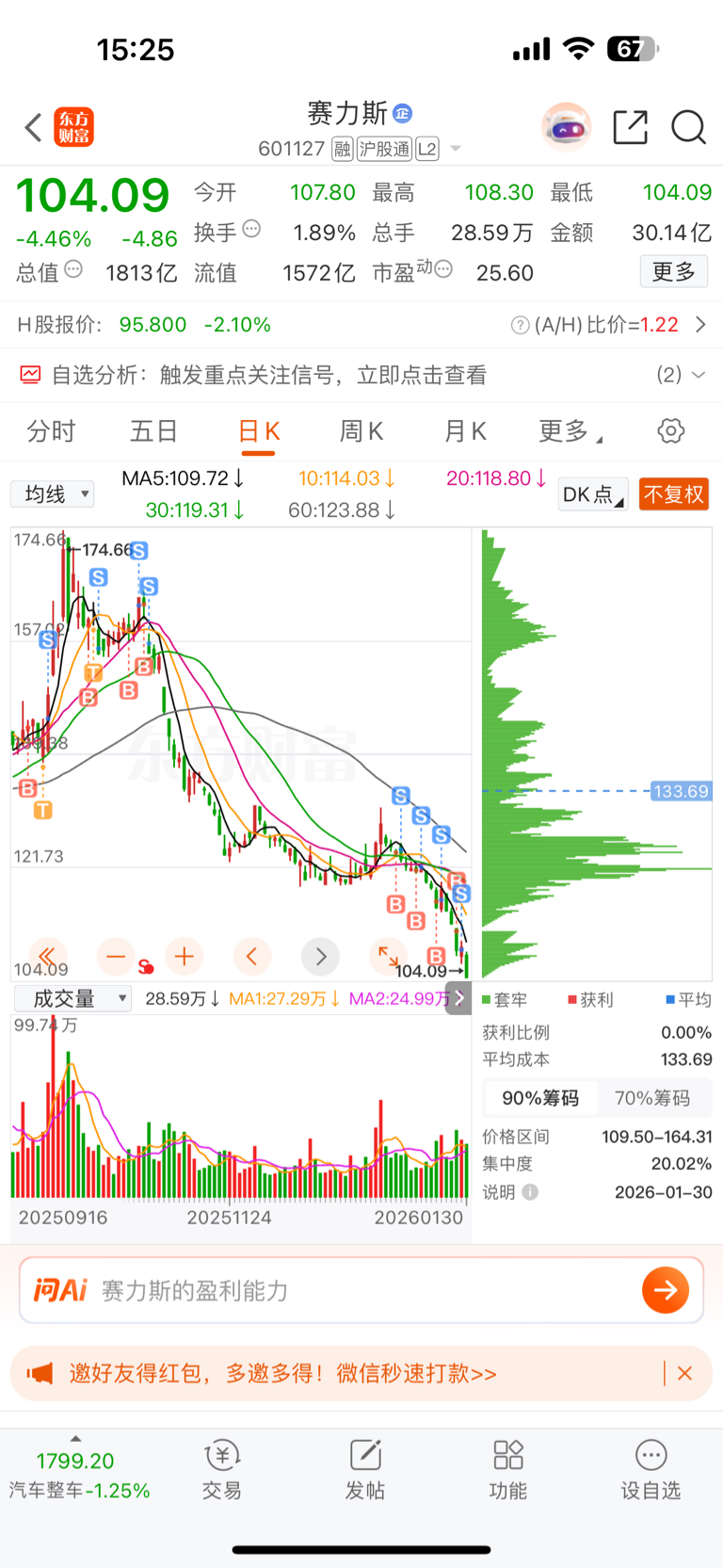 $赛力斯(SH601127)$ 这筹码上峰都不动的,还会大跌