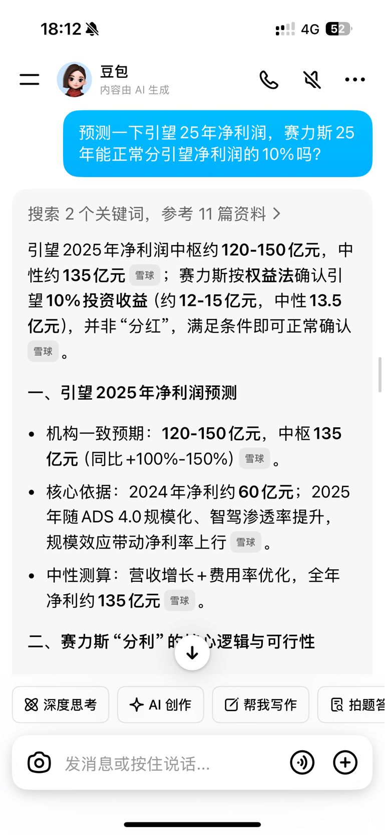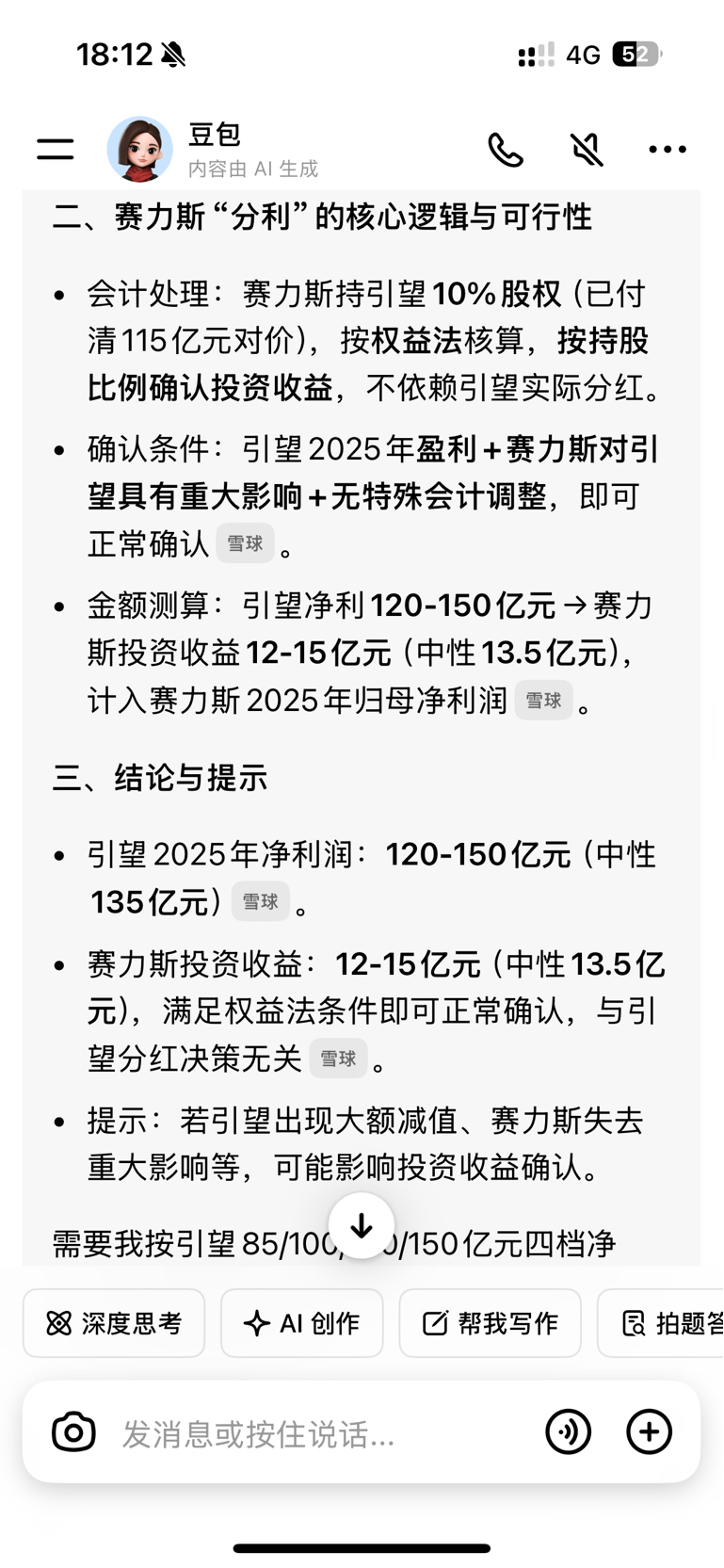 豆包是个好东西。“分红”跟“投资收益”是两个概念