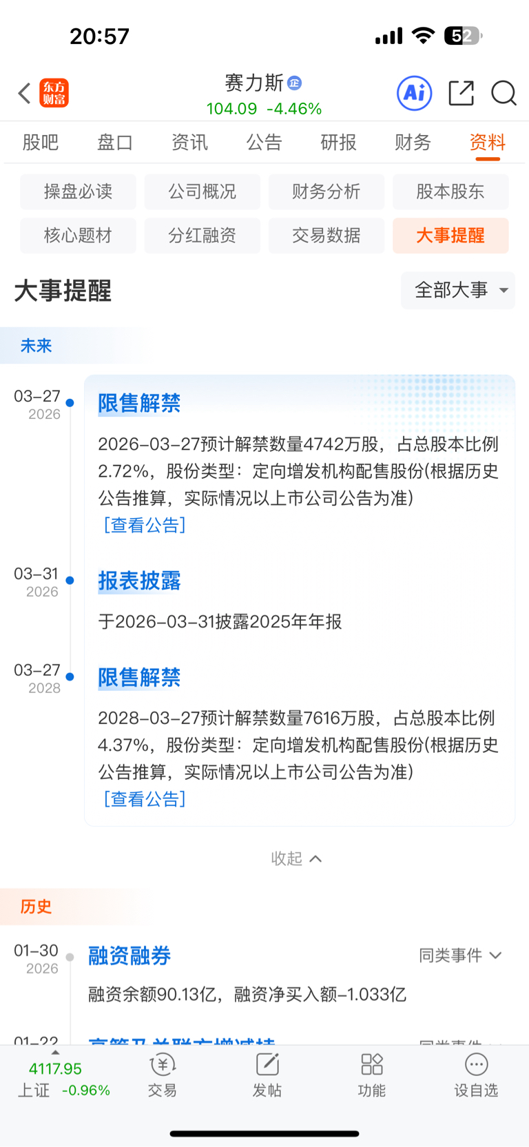 $赛力斯(SH601127)$ 解禁股 那么多 66.06卖的 主力不会给太多溢价的 最多到3.27给你70卖不卖 不卖我也不拉 要等66成本的解禁股抛压出来才会拉