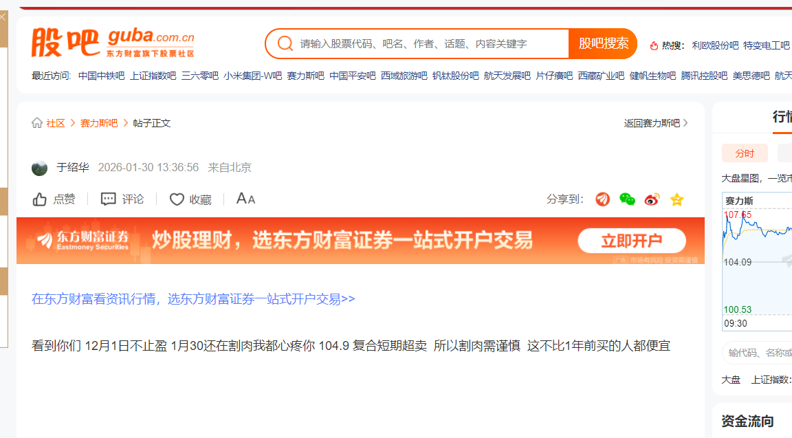 温馨提示: 1.根据《证券法》规定,禁止编造、传播虚假信息或者误导性信息,扰乱证券市场;2.用户在本社区发表的所有资料、言论等仅代表个人观点,与本网站立场无关,不对您构成任何投资建议。用户应基于自己的独立判断,自行决定证券投资并承担相应风险。《东方财富社区管理规定》