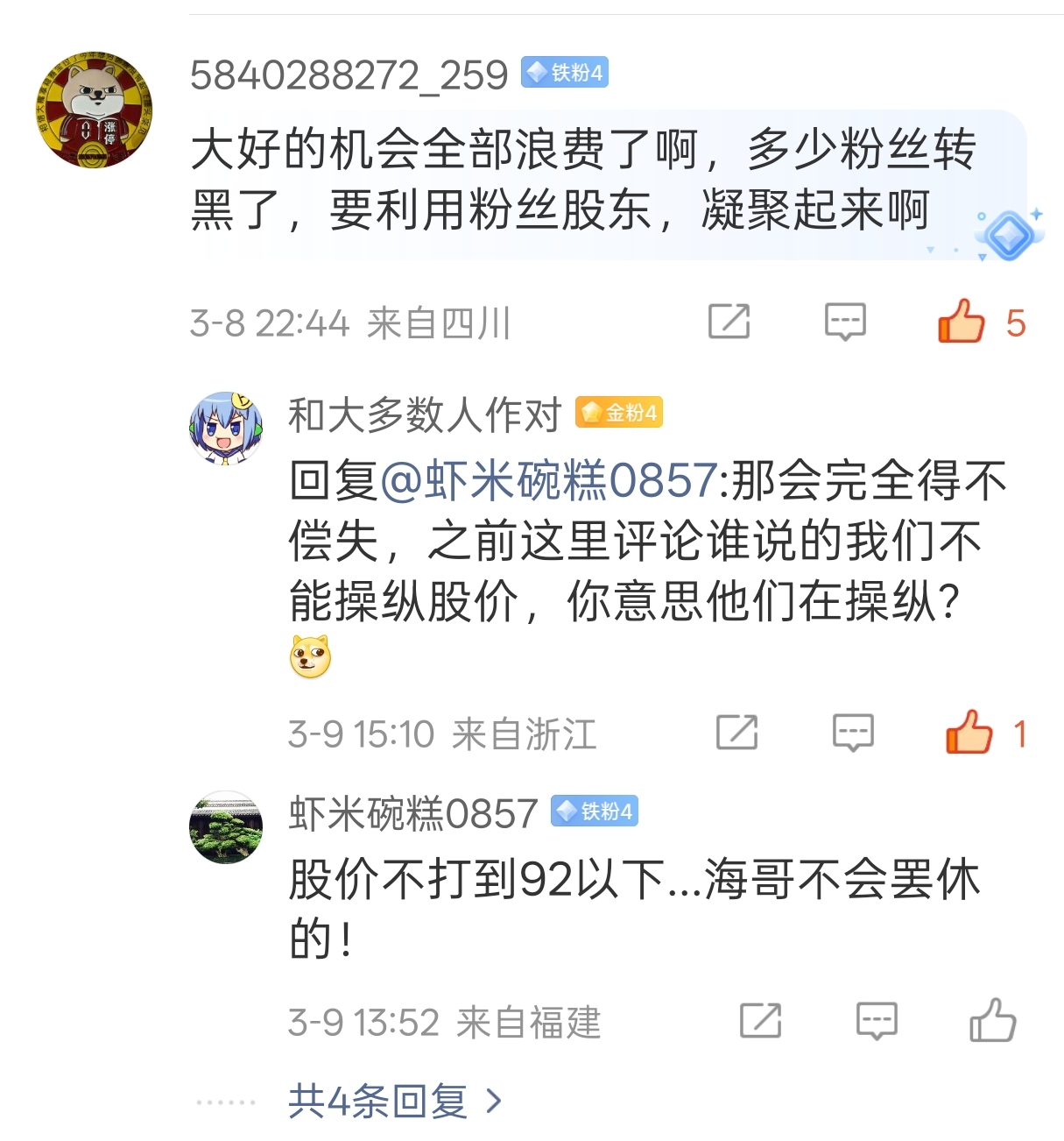 温馨提示: 1.根据《证券法》规定,禁止编造、传播虚假信息或者误导性信息,扰乱证券市场;2.用户在本社区发表的所有资料、言论等仅代表个人观点,与本网站立场无关,不对您构成任何投资建议。用户应基于自己的独立判断,自行决定证券投资并承担相应风险。《东方财富社区管理规定》