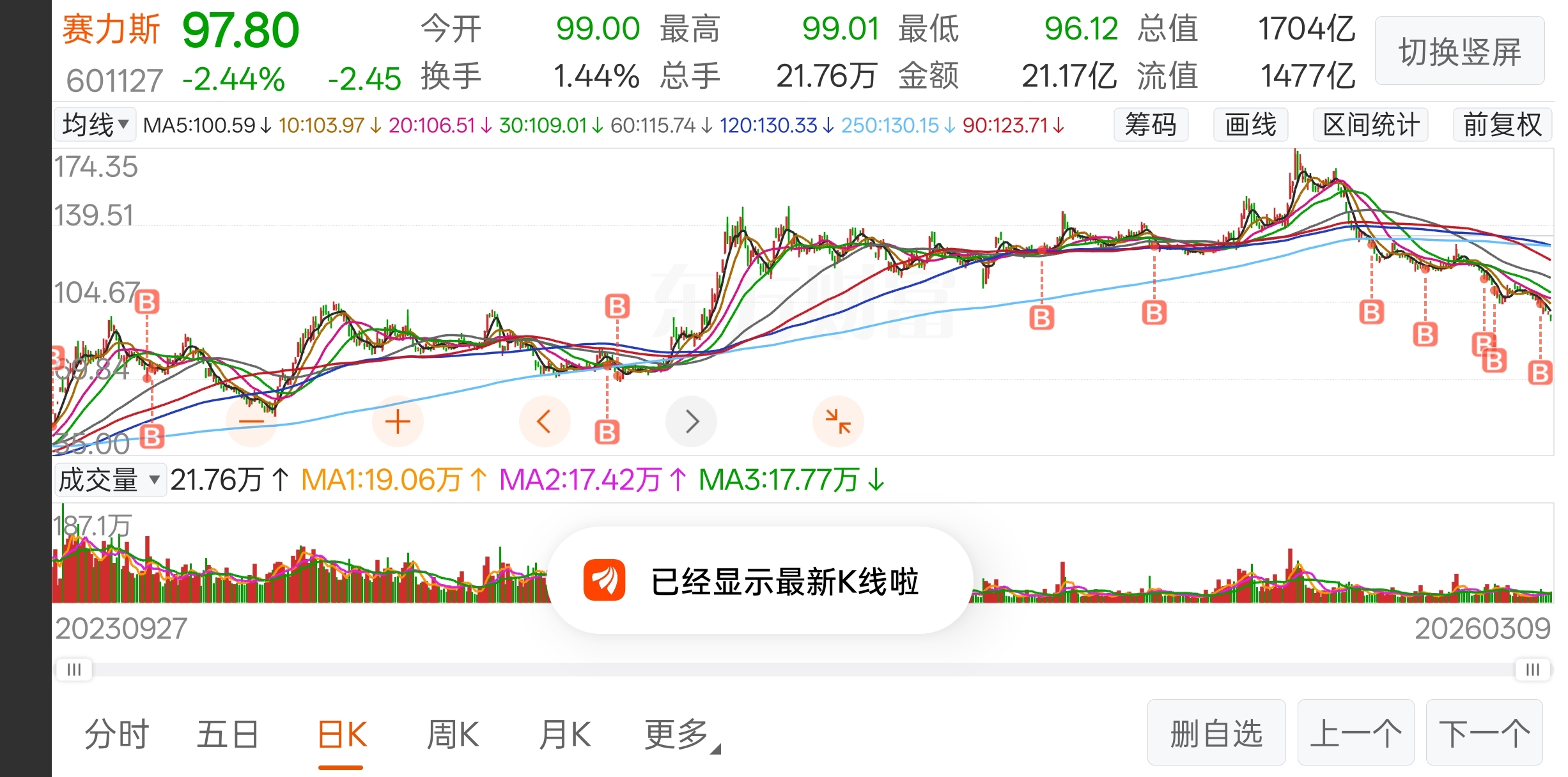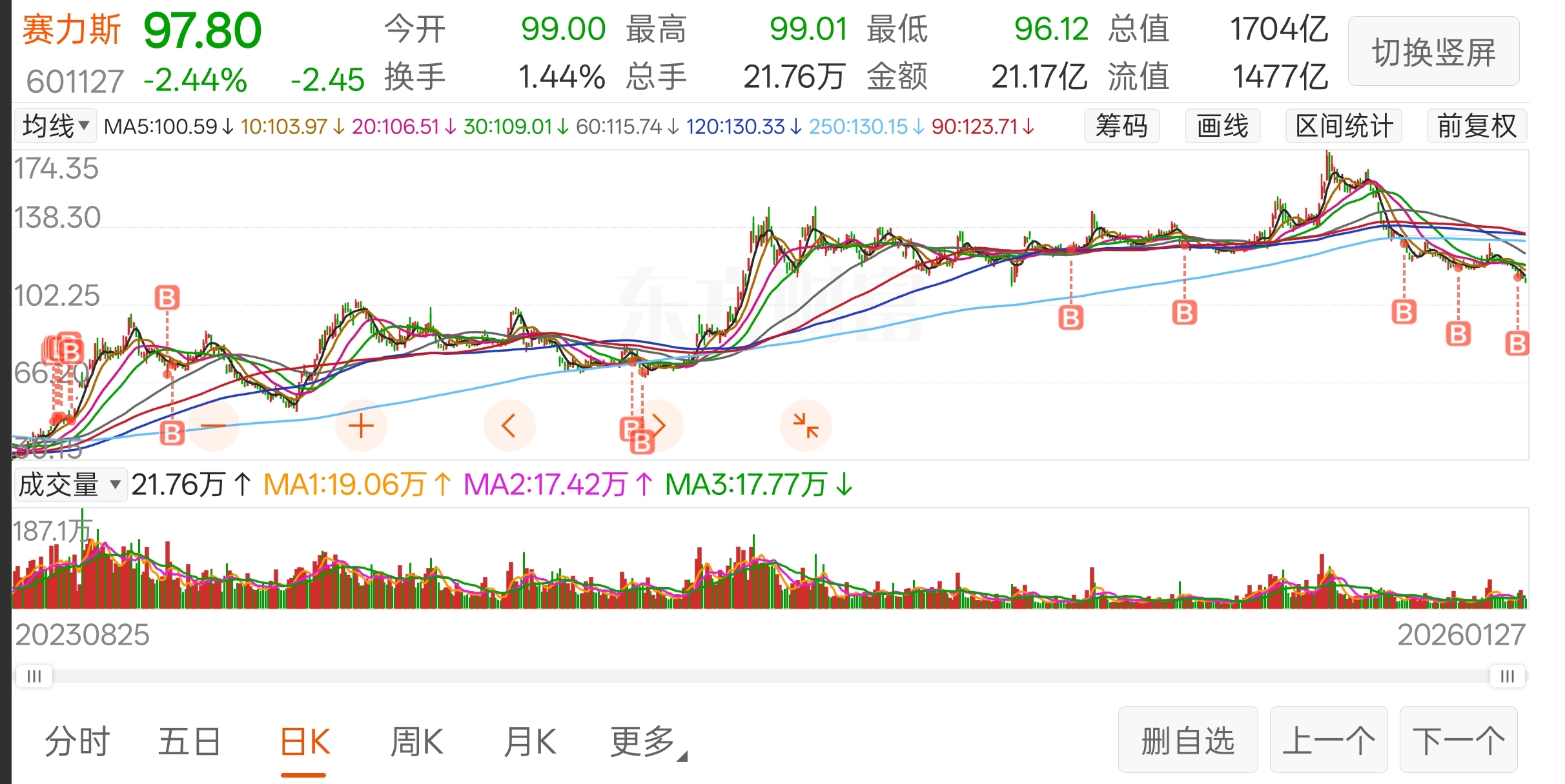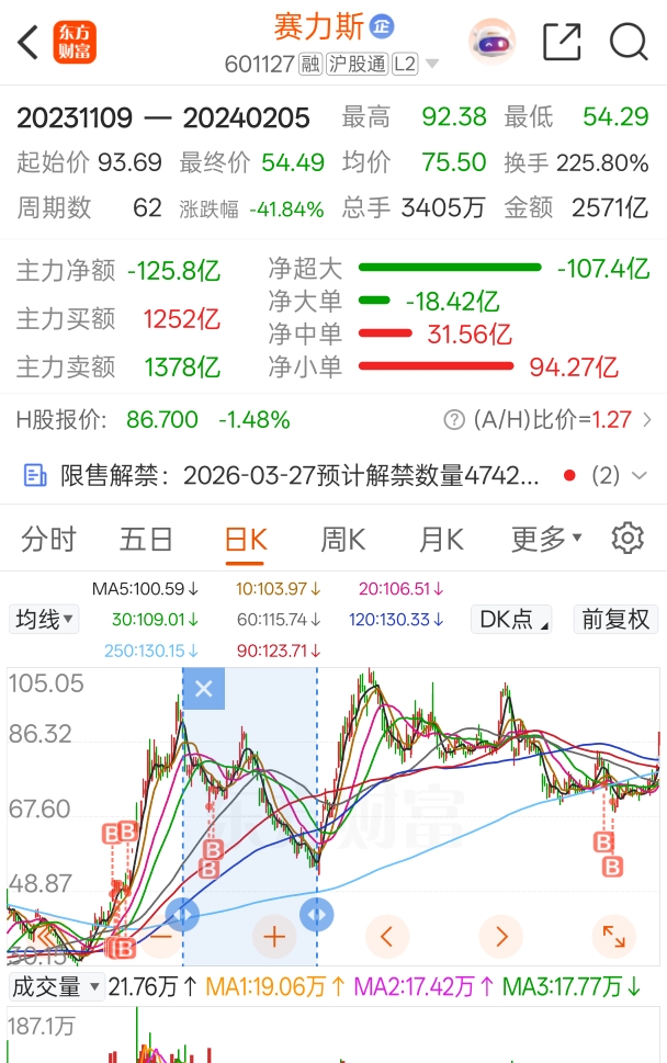 和23年11月盘中99.97跌到24年2月54的时候差不多
