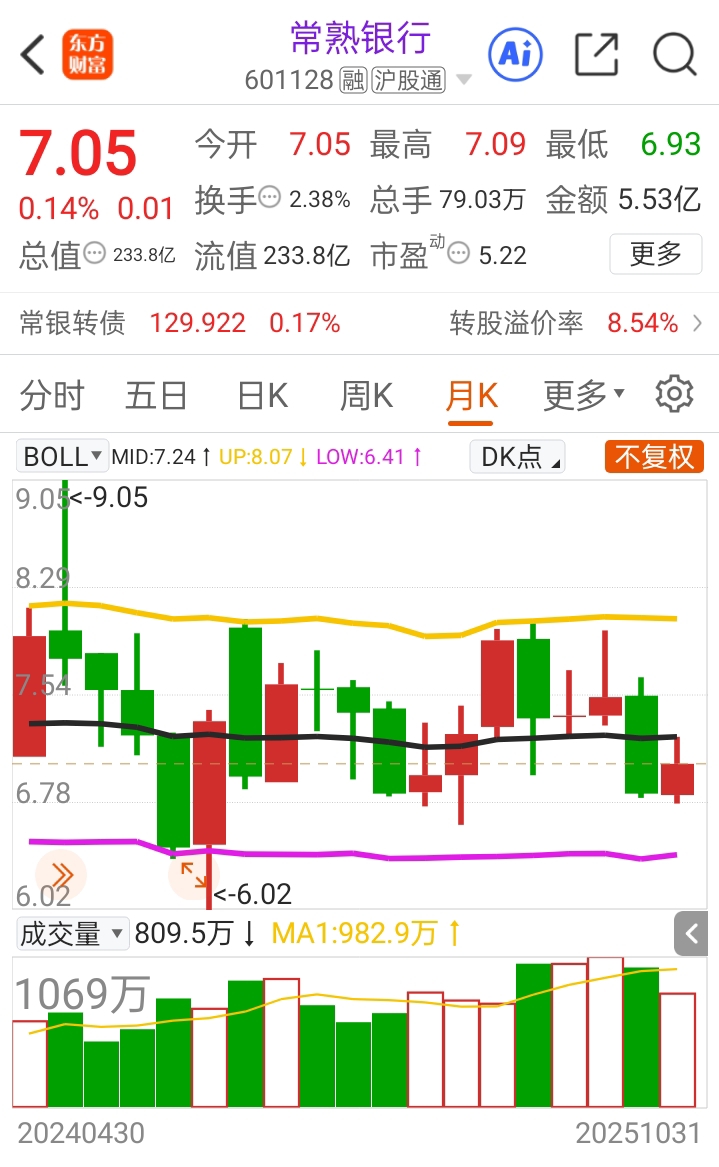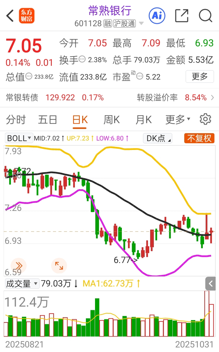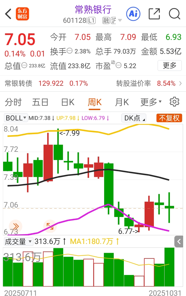 常熟银行红了,季报行情继续涨了两天