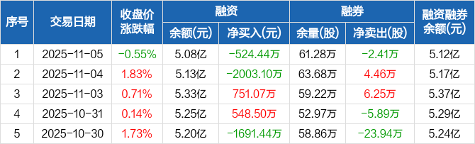 常熟银行:融资净偿还524.44万元,融资余额5.08亿元(11-05)