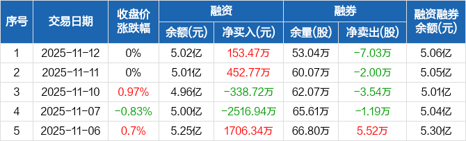 常熟银行:融资净买入153.47万元,融资余额5.02亿元(11-12)